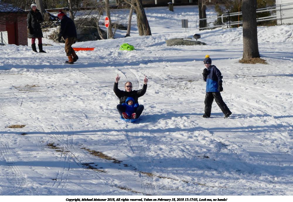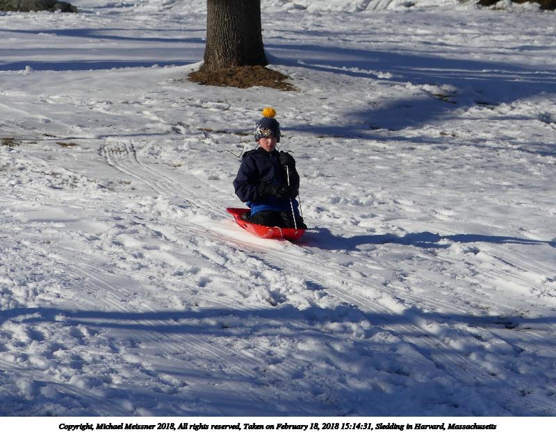 Picture #17: Sledding in Harvard, Massachusetts #15 800x622, 135,088 bytes (132K), (html file) Copyright, Michael Meissner 2018, All rights reserved Panasonic FZ300 camera f/4.0, ISO 100, 1/400 sec, 108.0mm, auto mode, auto wb (5600), matrix metering, bias 0.7, image stabilization, normal color mode 35mm equivalent focal length 674.0mm, extended zoom Programs used: crop, raw therapee Taken by Michael Meissner on February 18, 2018 15:20:20 Last modified on February 18, 2018 at 19:39 |