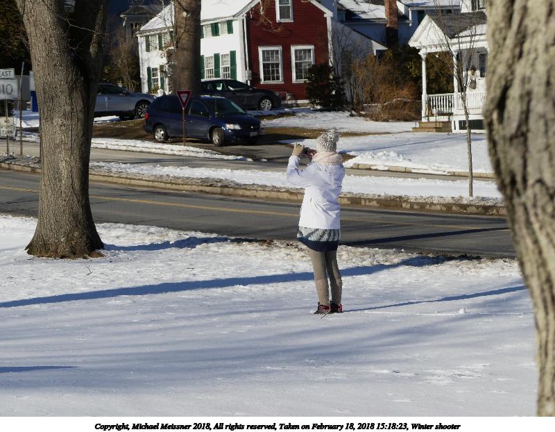 Picture #19: Winter shooter 800x622, 129,367 bytes (127K), (html file) Copyright, Michael Meissner 2018, All rights reserved Panasonic FZ300 camera f/4.0, ISO 100, 1/1000 sec, 26.5mm, auto mode, auto wb (5600), matrix metering, bias 0.7, image stabilization, normal color mode 35mm equivalent focal length 147.0mm Programs used: crop, raw therapee Taken by Michael Meissner on February 18, 2018 15:18:23 Last modified on February 18, 2018 at 19:37 |