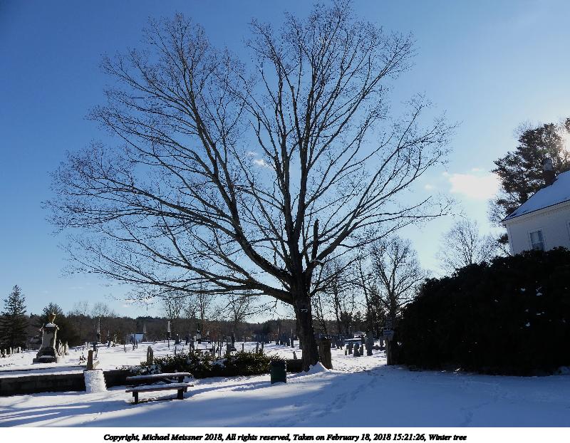 Picture #15: Winter tree 800x622, 162,323 bytes (159K), (html file) Copyright, Michael Meissner 2018, All rights reserved Panasonic FZ300 camera f/4.0, ISO 100, 1/640 sec, 4.5mm, auto mode, auto wb (5600), matrix metering, bias 0.7, image stabilization, normal color mode 35mm equivalent focal length 25.0mm Programs used: crop, raw therapee Taken by Michael Meissner on February 18, 2018 15:21:26 Last modified on February 18, 2018 at 19:40 This picture is one of my favorites. |