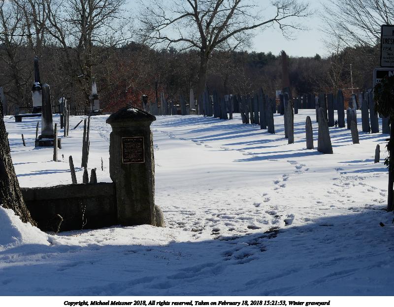 Picture #14: Winter graveyard 800x622, 147,652 bytes (145K), (html file) Copyright, Michael Meissner 2018, All rights reserved Panasonic FZ300 camera f/4.0, ISO 100, 1/800 sec, 20.1mm, auto mode, auto wb (5600), matrix metering, bias 0.7, image stabilization, normal color mode 35mm equivalent focal length 112.0mm Programs used: crop, raw therapee Taken by Michael Meissner on February 18, 2018 15:21:53 Last modified on February 18, 2018 at 19:40 |