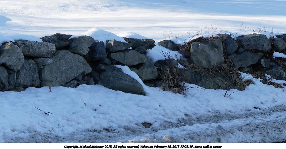 Picture #10: Stone wall in winter 1000x522, 123,236 bytes (121K), (html file) Copyright, Michael Meissner 2018, All rights reserved Panasonic FZ300 camera f/4.0, ISO 100, 1/400 sec, 33.0mm, auto mode, auto wb (5900), matrix metering, image stabilization, normal color mode 35mm equivalent focal length 183.0mm Programs used: crop, gimp, raw therapee Taken by Michael Meissner on February 18, 2018 15:28:19 Last modified on February 18, 2018 at 19:46 |