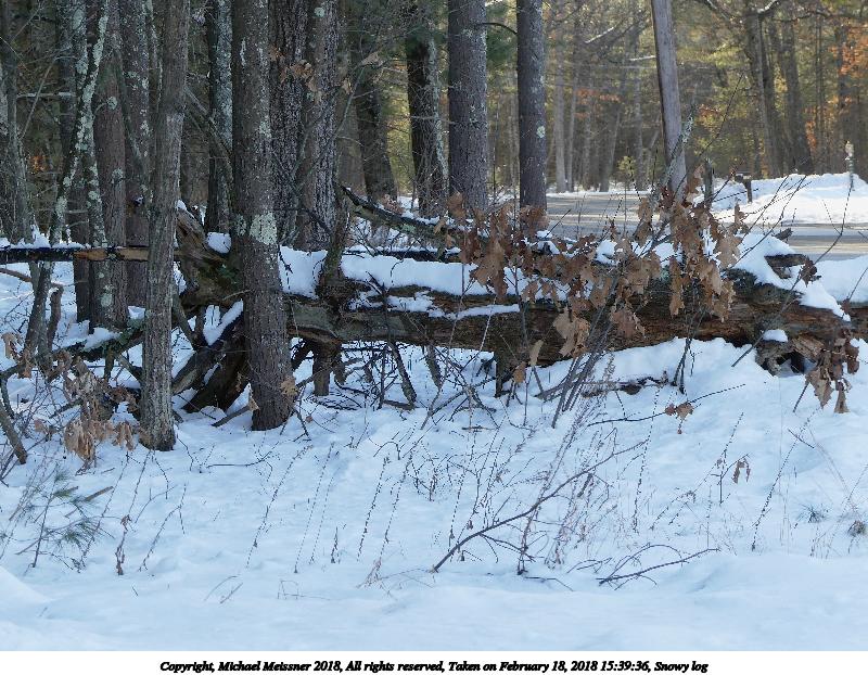 Picture #9: Snowy log 800x622, 169,851 bytes (166K), (html file) Copyright, Michael Meissner 2018, All rights reserved Panasonic FZ300 camera f/3.5, ISO 100, 1/160 sec, 31.1mm, auto mode, auto wb (6600), matrix metering, image stabilization, normal color mode 35mm equivalent focal length 173.0mm Programs used: crop, gimp, raw therapee Taken by Michael Meissner on February 18, 2018 15:39:36 Last modified on February 18, 2018 at 19:46 |