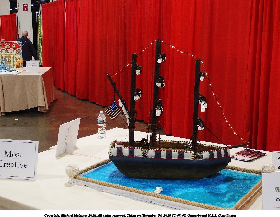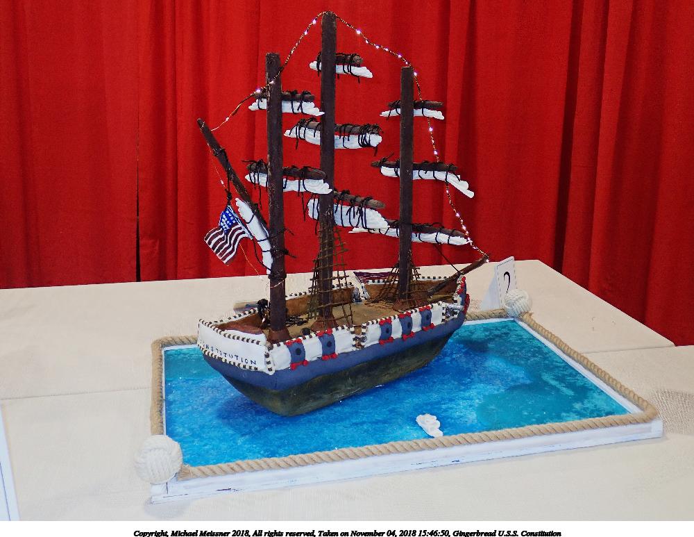 Picture #23: Gingerbread U.S.S. Constitution #2 900x698, 122,056 bytes (120K), (html file) Copyright, Michael Meissner 2018, All rights reserved Olympus Stylus-1 camera f/2.8, ISO 400, FL-36R flash, 1/50 sec, 9.8mm, auto mode, vivid color, SHQ, matrix metering, IS Auto, noise reduction auto, noise filter low 35mm equivalent focal length 46.0mm Programs used: crop, raw therapee Taken by Michael Meissner on November 04, 2018 15:49:48 Last modified on November 04, 2018 at 22:16 |