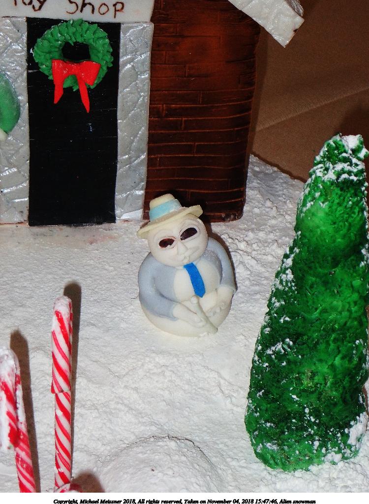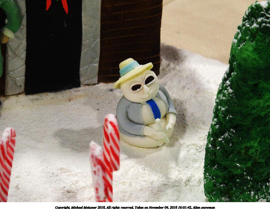 Picture #8: Alien snowman #2 900x698, 117,798 bytes (116K), (html file) Copyright, Michael Meissner 2018, All rights reserved Olympus Stylus-1 camera f/2.8, ISO 400, 1/100 sec, 35.0mm, auto mode, vivid color, SHQ, matrix metering, IS Auto, noise reduction auto, noise filter low 35mm equivalent focal length 165.0mm Programs used: crop, gimp, raw therapee Taken by Michael Meissner on November 04, 2018 16:01:42 Last modified on November 04, 2018 at 22:24 |