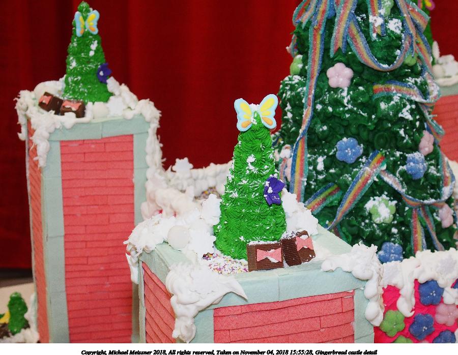 Picture #41: Gingerbread castle detail 1000x773, 180,895 bytes (177K), (html file) Copyright, Michael Meissner 2018, All rights reserved Olympus TG-5 camera f/11.0, ISO 400, flash, 1/60 sec, 12.6mm, auto mode, vivid color, SHQ, matrix metering, IS1 (All Direction Shake IS), noise reduction 4 35mm equivalent focal length 70.0mm Programs used: crop, raw therapee Taken by Michael Meissner on November 04, 2018 15:41:30 Last modified on November 04, 2018 at 22:05 |