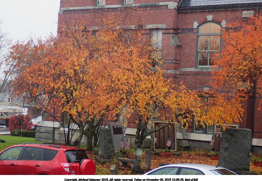 Picture #5: End of fall 1000x690, 242,342 bytes (237K), (html file) Copyright, Michael Meissner 2018, All rights reserved Olympus TG-5 camera f/3.4, ISO 200, flash, 1/50 sec, 9.6mm, auto mode, vivid color, SHQ, matrix metering, IS1 (All Direction Shake IS), noise reduction 4 35mm equivalent focal length 53.0mm Programs used: crop, gimp, raw therapee Taken by Michael Meissner on November 06, 2018 12:08:38 Last modified on November 09, 2018 at 22:42 |