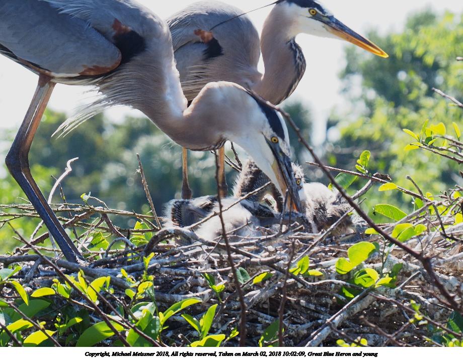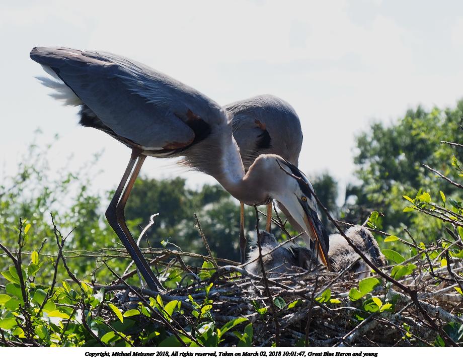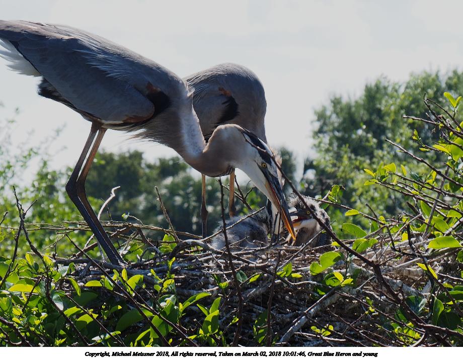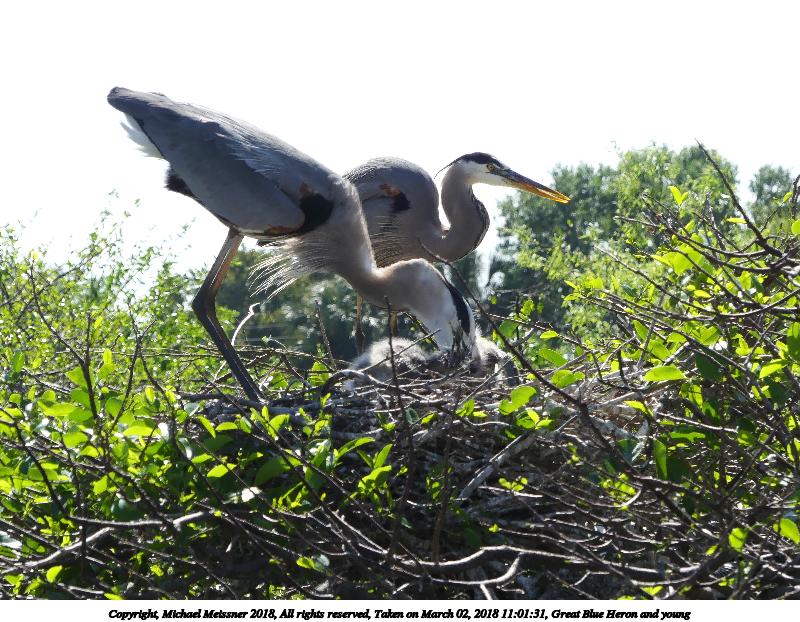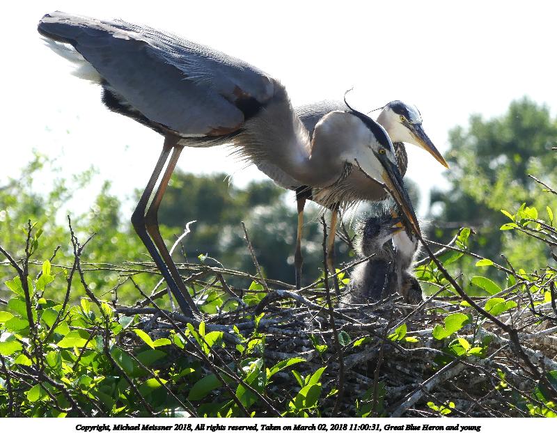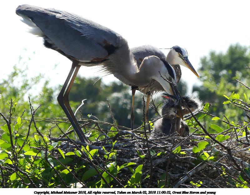 Picture #121: Great Blue Heron and young #8 920x712, 153,169 bytes (150K), (html file) Copyright, Michael Meissner 2018, All rights reserved Olympus E-M1-I camera with Panasonic 100-300mm-II lens f/6.3, ISO 200, 1/640 sec, 136.0mm, auto mode, vivid color, SHQ, matrix metering, bias -0.3, digital zoom x2, IS1 (All Direction Shake IS), noise filter low 35mm equivalent focal length 545.0mm, digital zoom x2 Programs used: adjusttime, crop, raw therapee Taken by Michael Meissner on March 02, 2018 10:02:11 Last modified on March 30, 2018 at 23:26 |