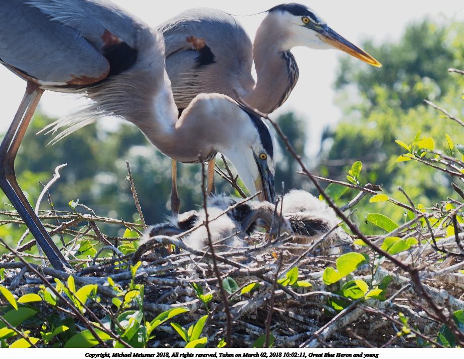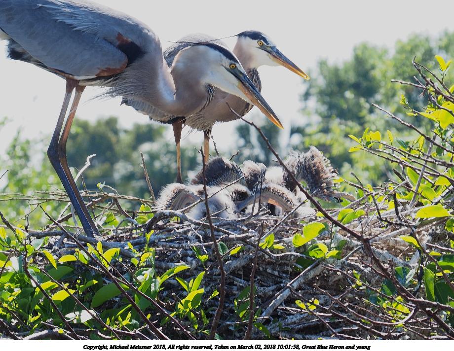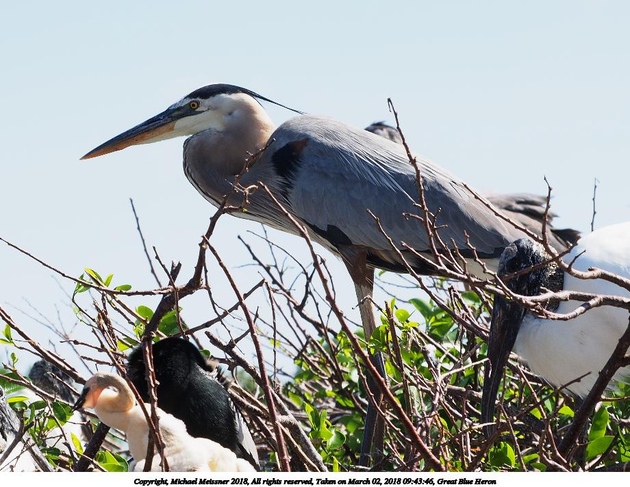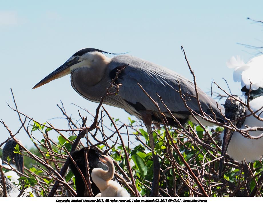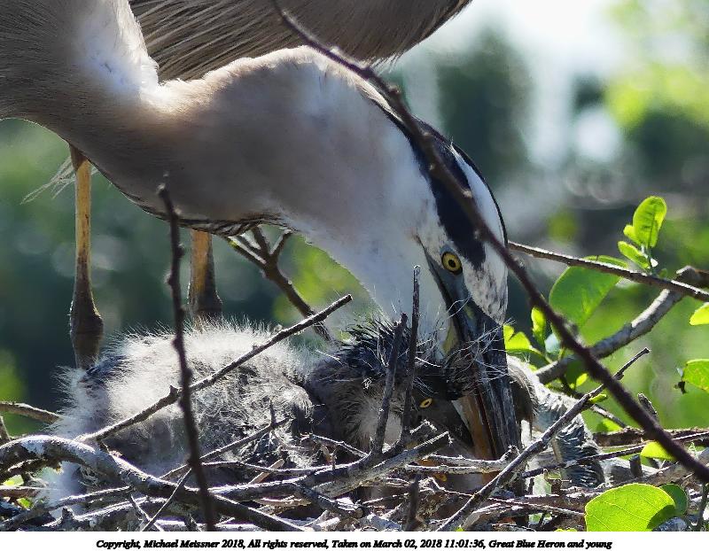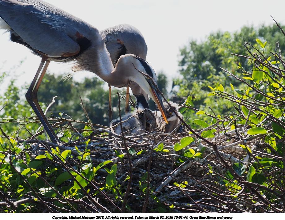 Picture #121: Great Blue Heron and young #8 920x712, 153,169 bytes (150K), (html file) Copyright, Michael Meissner 2018, All rights reserved Olympus E-M1-I camera with Panasonic 100-300mm-II lens f/6.3, ISO 200, 1/640 sec, 136.0mm, auto mode, vivid color, SHQ, matrix metering, bias -0.3, digital zoom x2, IS1 (All Direction Shake IS), noise filter low 35mm equivalent focal length 545.0mm, digital zoom x2 Programs used: adjusttime, crop, raw therapee Taken by Michael Meissner on March 02, 2018 10:02:11 Last modified on March 30, 2018 at 23:26 |