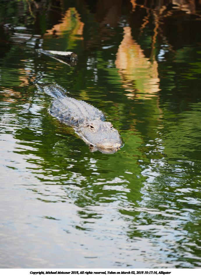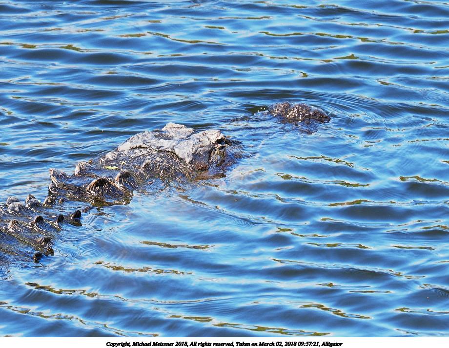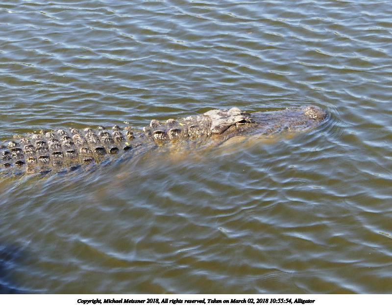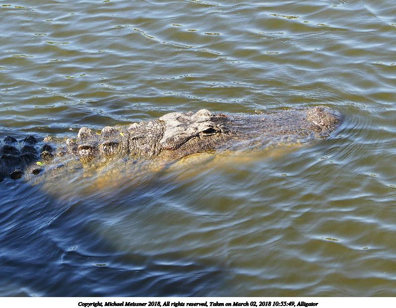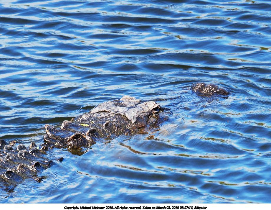 Picture #130: Alligator #2 920x712, 163,148 bytes (160K), (html file) Copyright, Michael Meissner 2018, All rights reserved Olympus E-M1-I camera with Panasonic 100-300mm-II lens f/6.3, ISO 200, 1/500 sec, 108.0mm, auto mode, vivid color, SHQ, matrix metering, bias -0.3, digital zoom x2, IS1 (All Direction Shake IS), noise filter low 35mm equivalent focal length 433.0mm, digital zoom x2 Programs used: adjusttime, crop, gimp, raw therapee Taken by Michael Meissner on March 02, 2018 09:57:21 Last modified on March 30, 2018 at 23:23 |