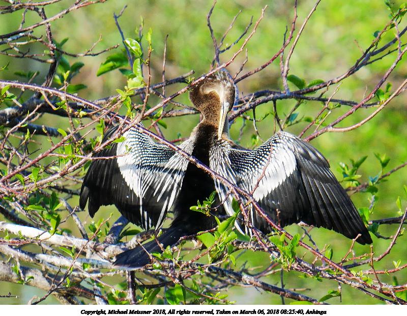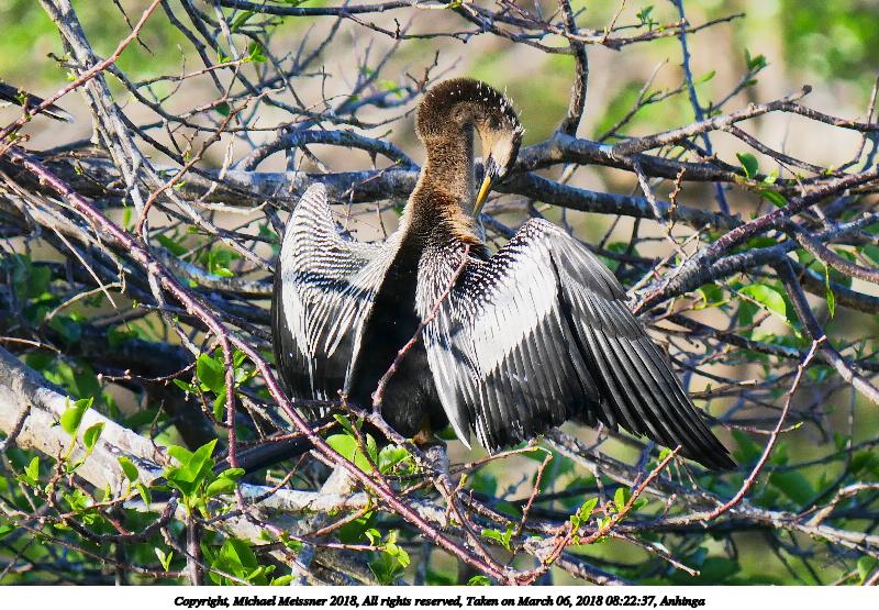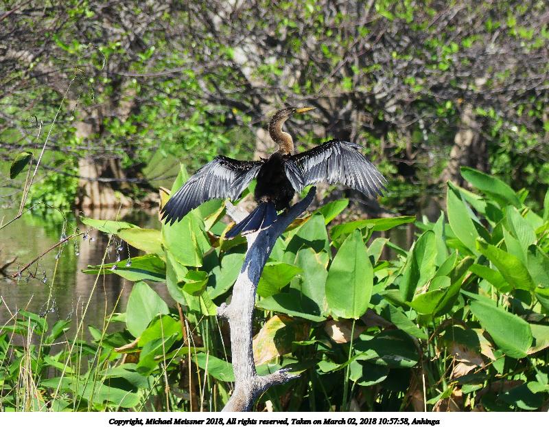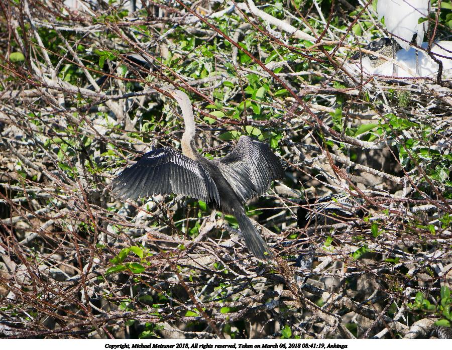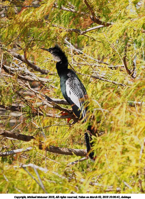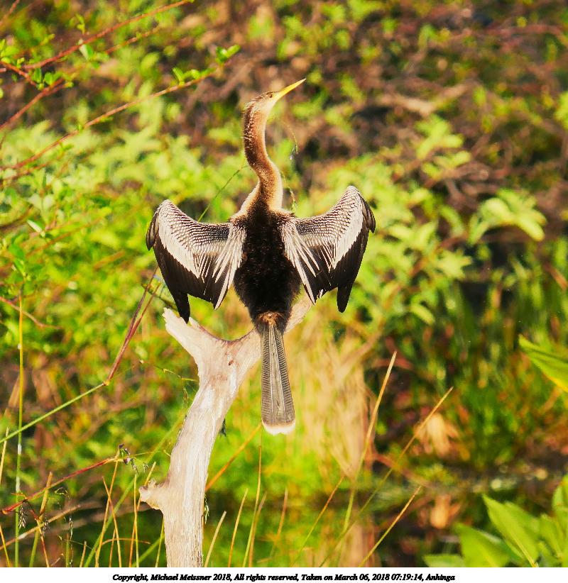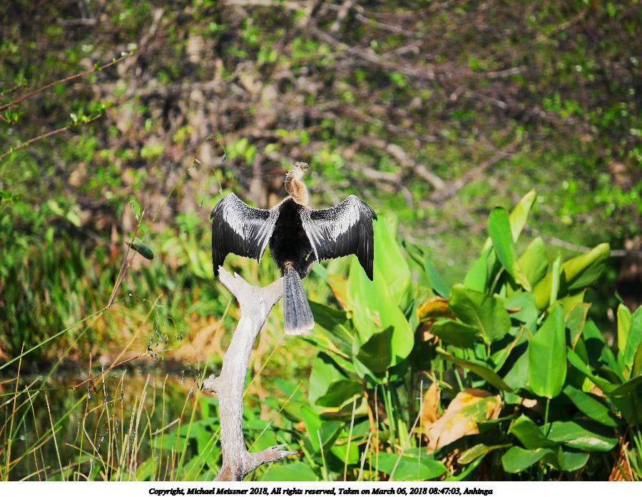 Picture #4: Anhinga #13 900x697, 162,710 bytes (159K), (html file) Copyright, Michael Meissner 2018, All rights reserved Panasonic G85 camera with Panasonic 100-300mm-II f/4.0-5.6 lens f/5.6, ISO 200, 1/640 sec, 300.0mm, auto mode, auto wb (5100), matrix metering, bias -0.3, continous focus, noise reduction 1 35mm equivalent focal length 600.0mm Programs used: crop, raw therapee Taken by Michael Meissner on March 06, 2018 08:47:03 Last modified on April 01, 2018 at 23:06 |