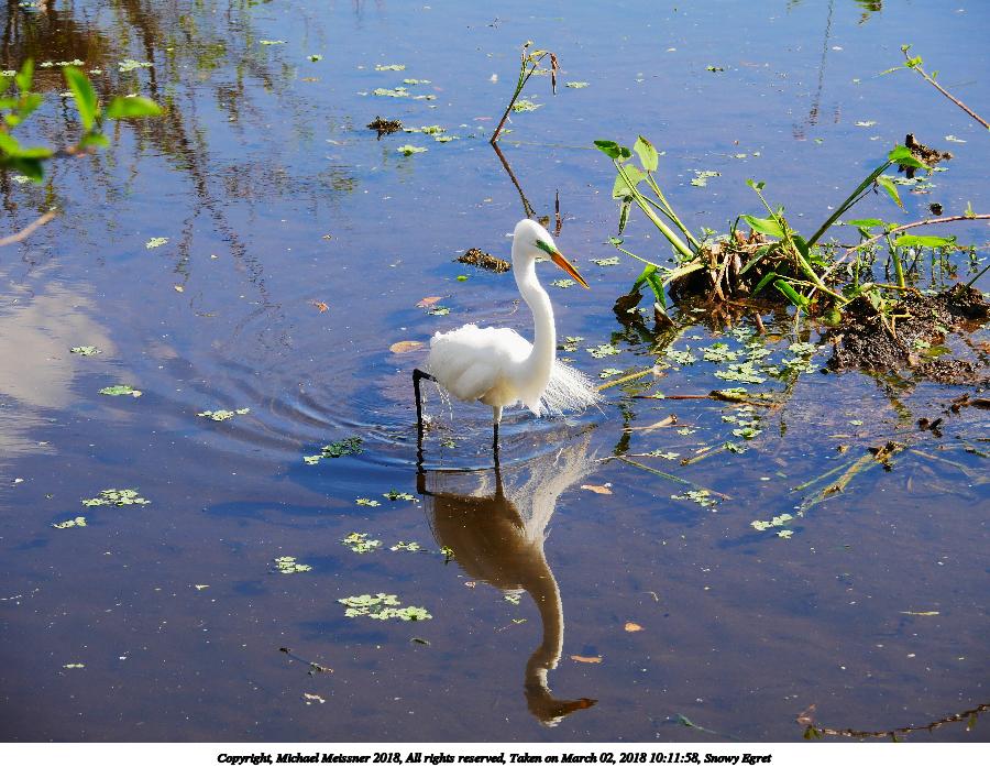 Picture #140: Snowy Egret 900x622, 137,297 bytes (135K), (html file) Copyright, Michael Meissner 2018, All rights reserved Olympus E-M1-I camera with Panasonic 100-300mm-II lens f/6.3, ISO 200, 1/640 sec, 108.0mm, auto mode, vivid color, SHQ, matrix metering, IS1 (All Direction Shake IS), noise filter low 35mm equivalent focal length 216.0mm Programs used: adjusttime, crop, gimp, raw therapee Taken by Michael Meissner on March 02, 2018 09:13:43 Last modified on March 30, 2018 at 23:14 |
