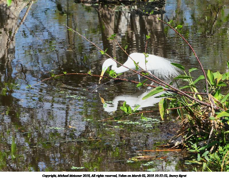 Picture #138: Snowy Egret #2 920x712, 175,083 bytes (171K), (html file) Copyright, Michael Meissner 2018, All rights reserved Olympus E-M1-I camera with Panasonic 100-300mm-II lens f/9.0, ISO 200, 1/1000 sec, 214.0mm, auto mode, vivid color, SHQ, matrix metering, bias -0.7, digital zoom x2, IS1 (All Direction Shake IS), noise filter low 35mm equivalent focal length 857.0mm, digital zoom x2 Programs used: adjusttime, crop, gimp, raw therapee Taken by Michael Meissner on March 02, 2018 09:22:32 Last modified on March 30, 2018 at 23:19 |
