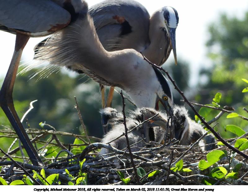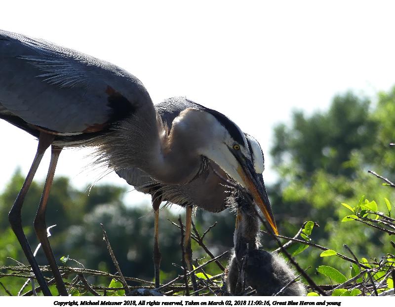Picture #101: Great Blue Heron and young #10 800x622, 164,843 bytes (161K), (html file) Copyright, Michael Meissner 2018, All rights reserved Panasonic FZ300 camera f/4.0, ISO 100, 1/1600 sec, 36.1mm, auto mode, auto wb (5400), matrix metering, bias -0.7, image stabilization, normal color mode 35mm equivalent focal length 200.0mm Programs used: crop, raw therapee Taken by Michael Meissner on March 02, 2018 10:41:14 Last modified on March 31, 2018 at 01:02 This picture is one of my favorites. |