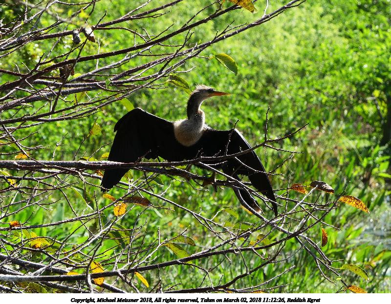 Picture #120: Anhinga #2 600x822, 187,168 bytes (183K), (html file) Copyright, Michael Meissner 2018, All rights reserved Olympus E-M1-I camera with Panasonic 100-300mm-II lens f/7.1, ISO 200, 1/800 sec, 136.0mm, auto mode, vivid color, SHQ, matrix metering, bias -0.7, IS1 (All Direction Shake IS), noise filter low 35mm equivalent focal length 272.0mm Programs used: adjusttime, crop, gimp, raw therapee, rotate left Taken by Michael Meissner on March 02, 2018 10:06:41 Last modified on March 30, 2018 at 23:28 |