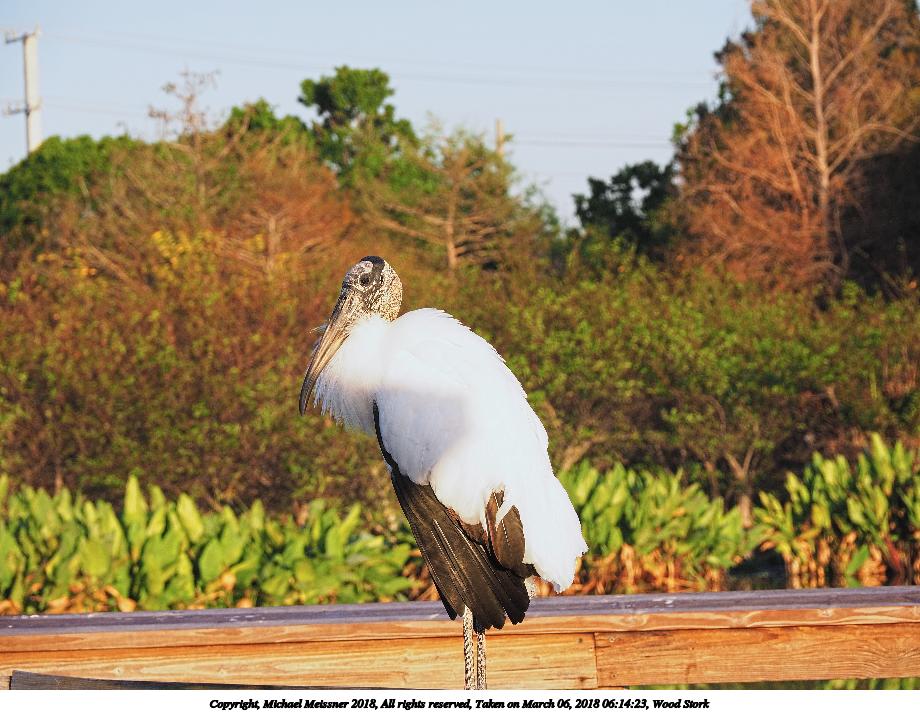 Picture #64: Wood Stork #14 690x942, 107,026 bytes (105K), (html file) Copyright, Michael Meissner 2018, All rights reserved Olympus E-M1-I camera with Olympus-m43 14-150mm-II f/4.0-5.6 lens f/8.0, ISO 200, 1/200 sec, 47.0mm, auto mode, vivid color, SHQ, matrix metering, bias 1.3, IS Auto, noise reduction auto, noise filter low, anti-shock 35mm equivalent focal length 94.0mm Programs used: adjusttime, crop, raw therapee, rotate left Taken by Michael Meissner on March 06, 2018 05:58:36 Last modified on April 01, 2018 at 22:16 This picture is one of my favorites. |