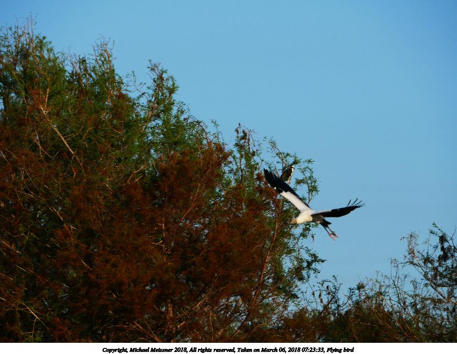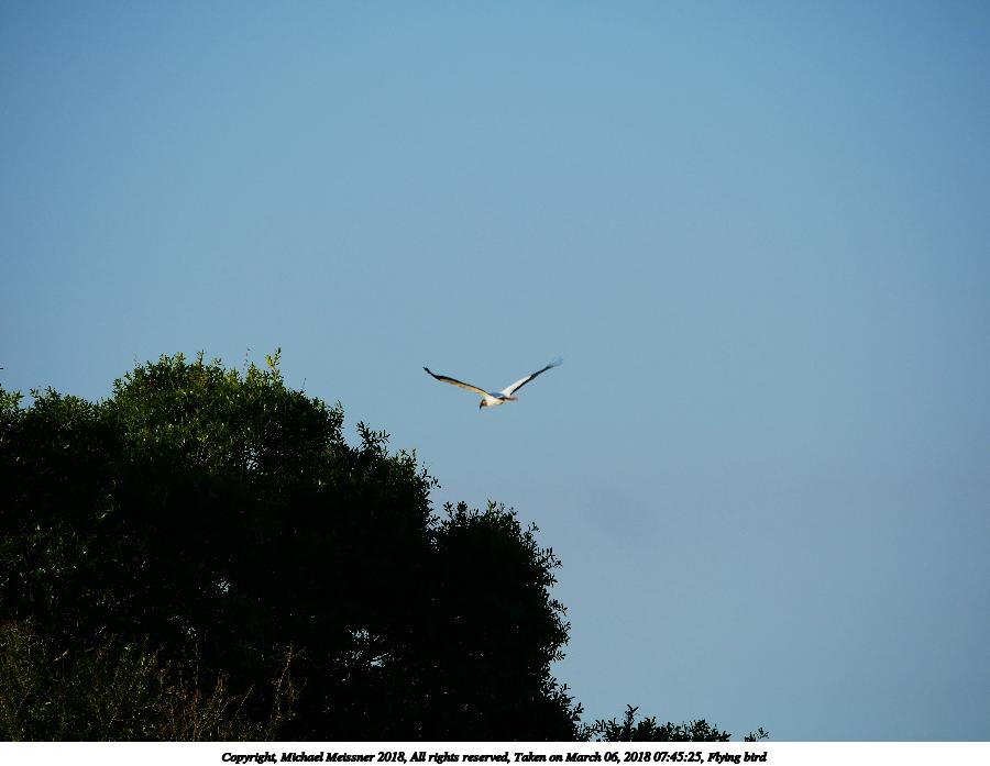 Picture #15: Flying bird #8 900x697, 54,524 bytes (54K), (html file) Copyright, Michael Meissner 2018, All rights reserved Panasonic G85 camera with Panasonic 100-300mm-II f/4.0-5.6 lens f/7.1, ISO 200, 1/1600 sec, 300.0mm, auto mode, auto wb (5100), matrix metering, bias -0.7, noise reduction 1 35mm equivalent focal length 600.0mm Programs used: crop, raw therapee Taken by Michael Meissner on March 06, 2018 08:35:06 Last modified on April 01, 2018 at 23:00 |