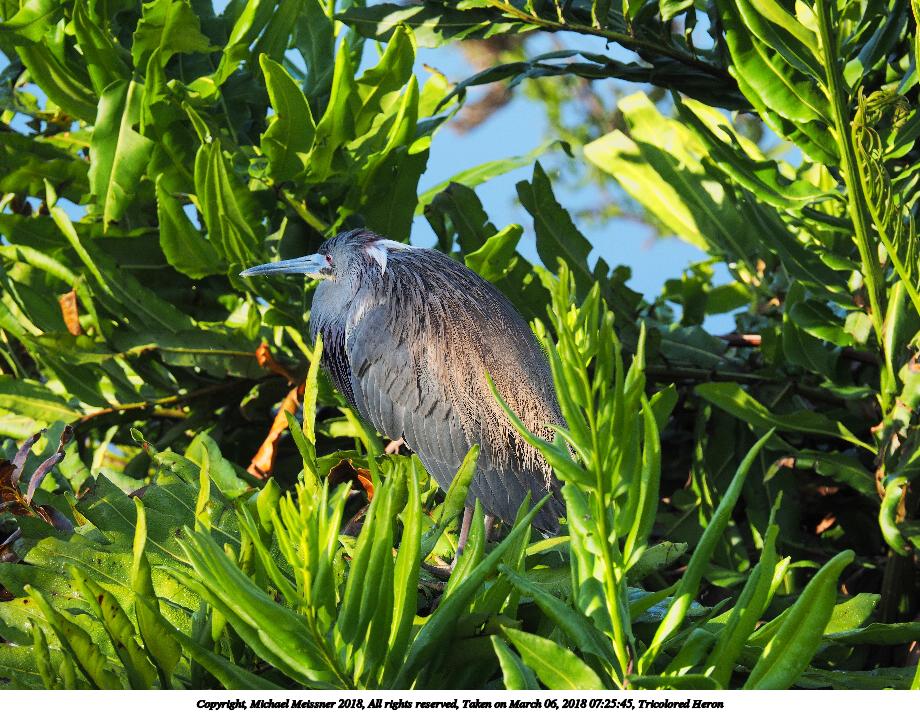 Picture #45: Tricolored Heron #10 920x712, 179,899 bytes (176K), (html file) Copyright, Michael Meissner 2018, All rights reserved Olympus E-M1-I camera with Olympus-m43 14-150mm-II f/4.0-5.6 lens f/7.1, ISO 200, 1/400 sec, 100.0mm, auto mode, vivid color, SHQ, matrix metering, bias -1.7, IS Auto, noise reduction auto, noise filter low 35mm equivalent focal length 200.0mm Programs used: adjusttime, crop, raw therapee Taken by Michael Meissner on March 06, 2018 07:25:45 Last modified on April 01, 2018 at 22:32 |