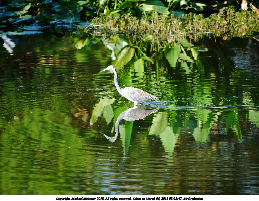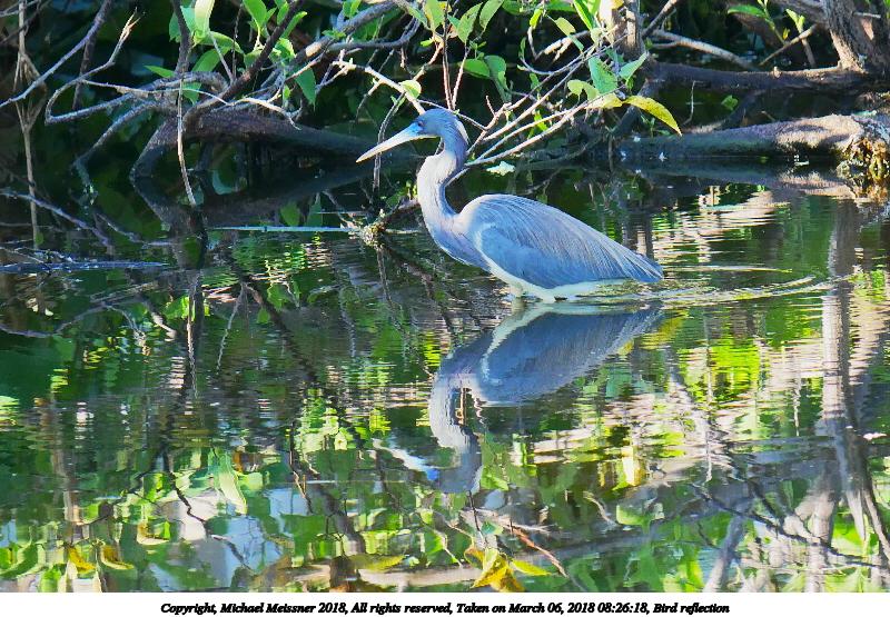 Picture #24: Bird reflection 900x697, 170,379 bytes (167K), (html file) Copyright, Michael Meissner 2018, All rights reserved Panasonic G85 camera with Panasonic 100-300mm-II f/4.0-5.6 lens f/5.1, ISO 500, 1/500 sec, 223.0mm, auto mode, auto wb (5500), matrix metering, noise reduction 1 35mm equivalent focal length 446.0mm Programs used: crop, gimp Taken by Michael Meissner on March 06, 2018 08:25:47 Last modified on April 01, 2018 at 22:52 This picture is one of my favorites. |