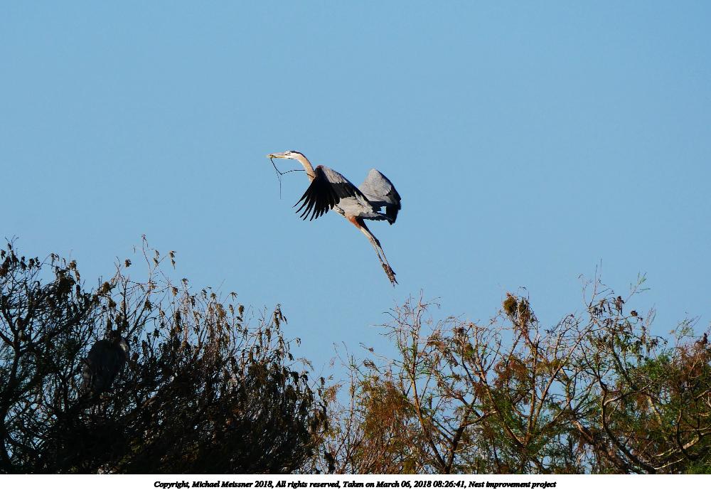 Picture #22: Nest improvement project #4 1000x689, 148,296 bytes (145K), (html file) Copyright, Michael Meissner 2018, All rights reserved Panasonic G85 camera with Panasonic 100-300mm-II f/4.0-5.6 lens f/6.3, ISO 200, 1/1300 sec, 223.0mm, auto mode, auto wb (5600), matrix metering, bias -0.7, noise reduction 1 35mm equivalent focal length 446.0mm Programs used: crop, gimp, raw therapee Taken by Michael Meissner on March 06, 2018 08:26:41 Last modified on April 01, 2018 at 22:54 This picture is one of my favorites. |