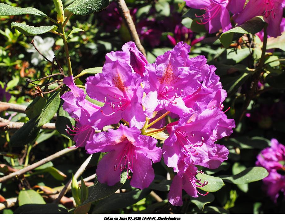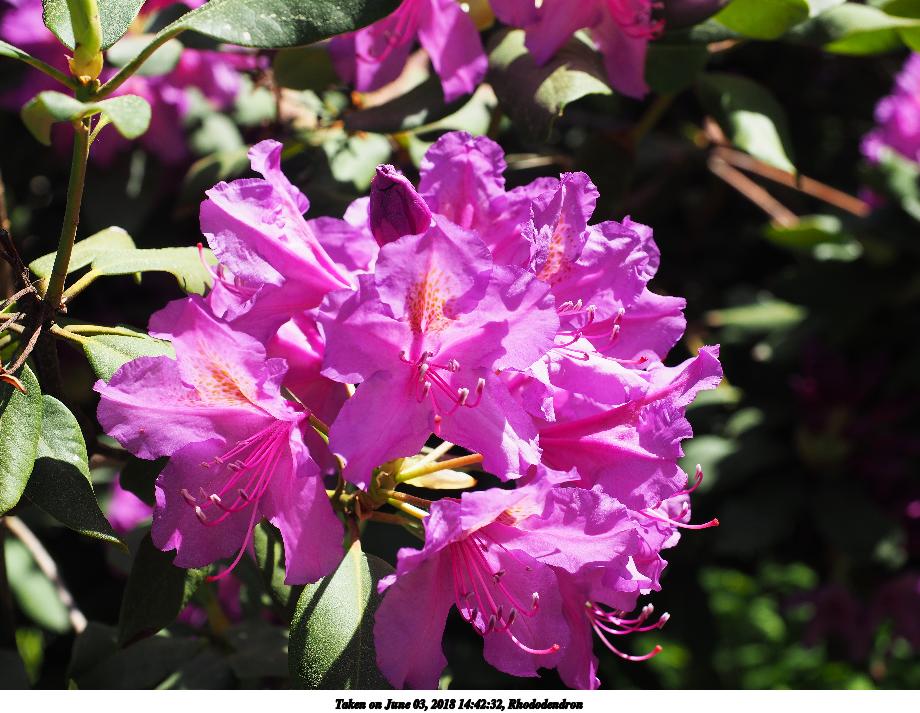 Picture #7: Rhododendron #4 920x713, 129,513 bytes (127K), (html file) Olympus E-M10-II camera with Olympus-m43 12-40mm f/2.8 lens f/5.0, ISO 200, 1/250 sec, 36.0mm, auto mode, vivid color, SHQ, matrix metering, IS Auto, noise reduction auto 35mm equivalent focal length 72.0mm Extra equipment used: Polarizer Programs used: crop, raw therapee Taken by Michael Meissner on June 03, 2018 14:42:32 Last modified on June 08, 2018 at 08:51 |