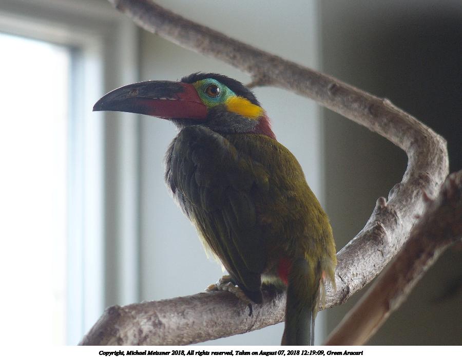Picture #89: Green Aracari 900x697, 77,470 bytes (76K), (html file) Copyright, Michael Meissner 2018, All rights reserved Olympus Stylus-1 camera f/2.8, ISO 200, 1/250 sec, 64.3mm, auto mode, vivid color, SHQ, matrix metering, IS Auto, noise reduction auto, noise filter low 35mm equivalent focal length 300.0mm Programs used: crop, gimp Taken by Michael Meissner on August 07, 2018 12:19:09 Last modified on September 17, 2018 at 23:49 |