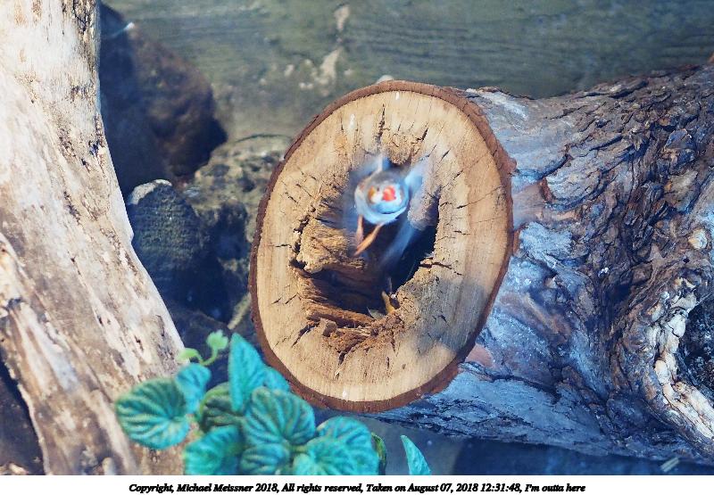 Picture #80: I'm outta here 800x555, 122,918 bytes (121K), (html file) Copyright, Michael Meissner 2018, All rights reserved Olympus E-M1-I camera with Olympus-m43 45mm f/1.8 lens f/1.8, ISO 1250, 1/100 sec, 45.0mm, auto mode, vivid color, SHQ, matrix metering, IS Auto, noise reduction auto, anti-shock, exposure bracketing (shot 1) 35mm equivalent focal length 90.0mm Programs used: crop, raw therapee Taken by Michael Meissner on August 07, 2018 12:31:48 Last modified on September 17, 2018 at 23:58 |
