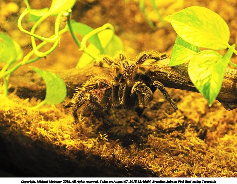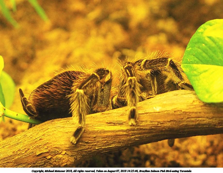 Picture #29: Brazilian Salmon Pink Bird-eating Tarantula #2 920x712, 141,298 bytes (138K), (html file) Copyright, Michael Meissner 2018, All rights reserved Olympus E-M1-I camera with Olympus-m43 45mm f/1.8 lens f/1.8, ISO 1600, 1/100 sec, 45.0mm, auto mode, vivid color, SHQ, matrix metering, digital zoom x2, IS Auto, noise reduction auto, anti-shock 35mm equivalent focal length 180.0mm, digital zoom x2 Programs used: crop, raw therapee Taken by Michael Meissner on August 07, 2018 14:25:46 Last modified on September 18, 2018 at 08:53 |