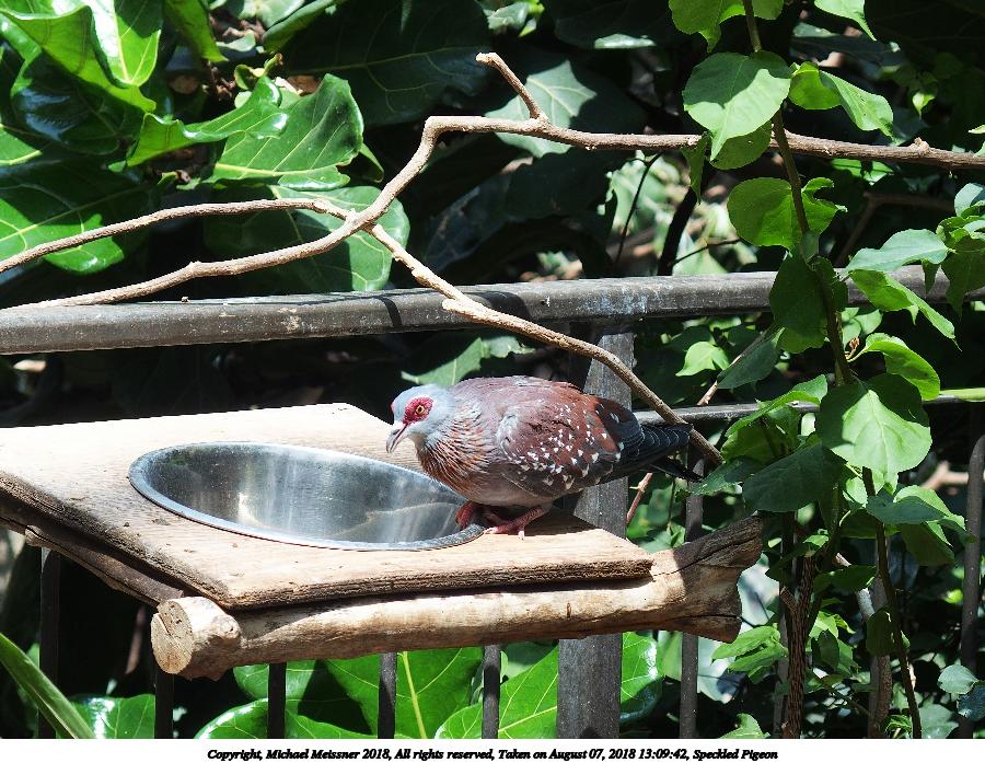 Picture #61: Speckled Pigeon 900x697, 141,248 bytes (138K), (html file) Copyright, Michael Meissner 2018, All rights reserved Olympus Stylus-1 camera f/4.0, ISO 100, 1/500 sec, 64.3mm, auto mode, vivid color, SHQ, matrix metering, digital zoom x2, IS Auto, noise reduction auto, noise filter low 35mm equivalent focal length 600.0mm, digital zoom x2 Programs used: crop, raw therapee Taken by Michael Meissner on August 07, 2018 13:00:35 Last modified on September 18, 2018 at 08:30 |