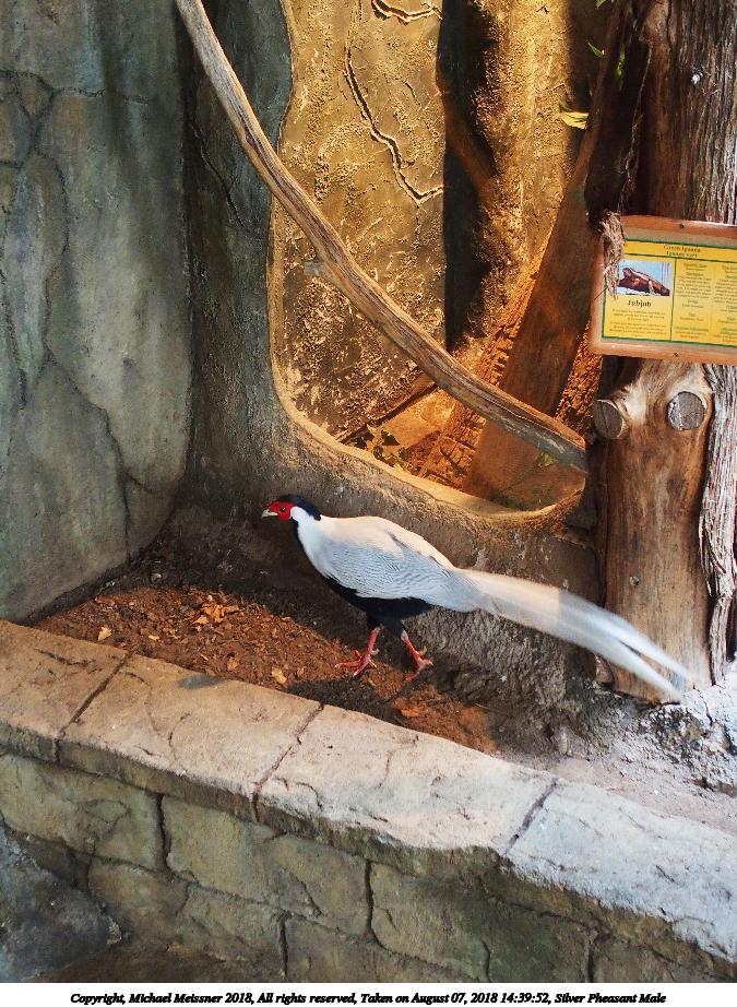 Picture #17: Silver Pheasant Male 675x922, 175,294 bytes (172K), (html file) Copyright, Michael Meissner 2018, All rights reserved Olympus Stylus-1 camera f/2.8, ISO 800, 1/20 sec, 13.2mm, auto mode, vivid color, SHQ, matrix metering, IS Auto, noise reduction auto, noise filter low 35mm equivalent focal length 62.0mm Taken by Michael Meissner on August 07, 2018 14:39:52 Last modified on September 18, 2018 at 09:01 |