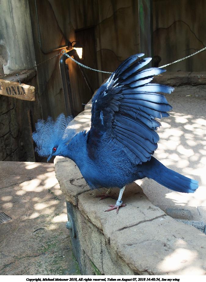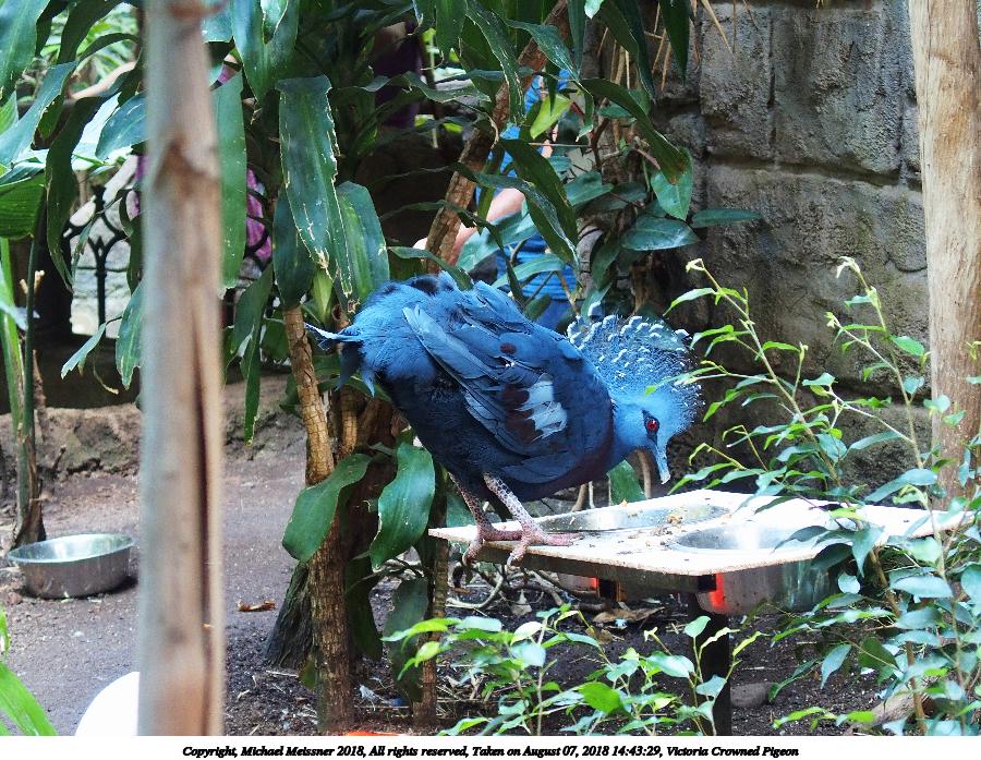 Picture #4: Victoria Crowned Pigeon #7 675x922, 124,508 bytes (122K), (html file) Olympus Stylus-1 camera f/2.8, ISO 250, 1/125 sec, 26.2mm, auto mode, vivid color, SHQ, matrix metering, IS Auto, noise reduction auto, noise filter low 35mm equivalent focal length 124.0mm Programs used: crop, raw therapee, rotate left Taken by Michael Meissner on August 07, 2018 14:48:39 Last modified on September 19, 2018 at 08:24 |