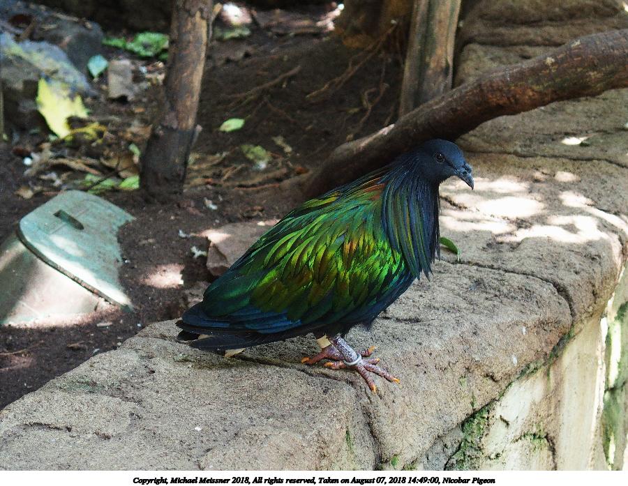 Picture #20: Nicobar Pigeon #5 900x697, 185,088 bytes (181K), (html file) Copyright, Michael Meissner 2018, All rights reserved Olympus Stylus-1 camera f/2.8, ISO 320, 1/125 sec, 26.2mm, auto mode, vivid color, SHQ, matrix metering, digital zoom x2, IS Auto, noise reduction auto, noise filter low 35mm equivalent focal length 248.0mm, digital zoom x2 Programs used: crop, raw therapee Taken by Michael Meissner on August 07, 2018 14:35:20 Last modified on September 18, 2018 at 08:59 |