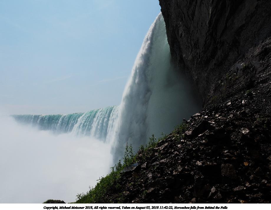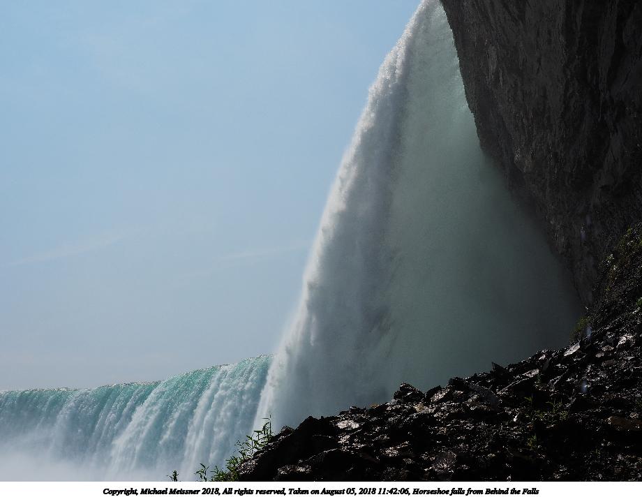 Picture #3: Horseshoe falls from Behind the Falls 920x712, 84,396 bytes (83K), (html file) Copyright, Michael Meissner 2018, All rights reserved Olympus E-M1-I camera with Olympus-m43 14-150mm-II f/4.0-5.6 lens f/11.0, ISO 200, 1/800 sec, 22.0mm, auto mode, vivid color, SHQ, matrix metering, IS Auto, noise reduction auto 35mm equivalent focal length 44.0mm Programs used: crop, raw therapee Taken by Michael Meissner on August 05, 2018 11:42:06 Last modified on August 19, 2018 at 18:07 |