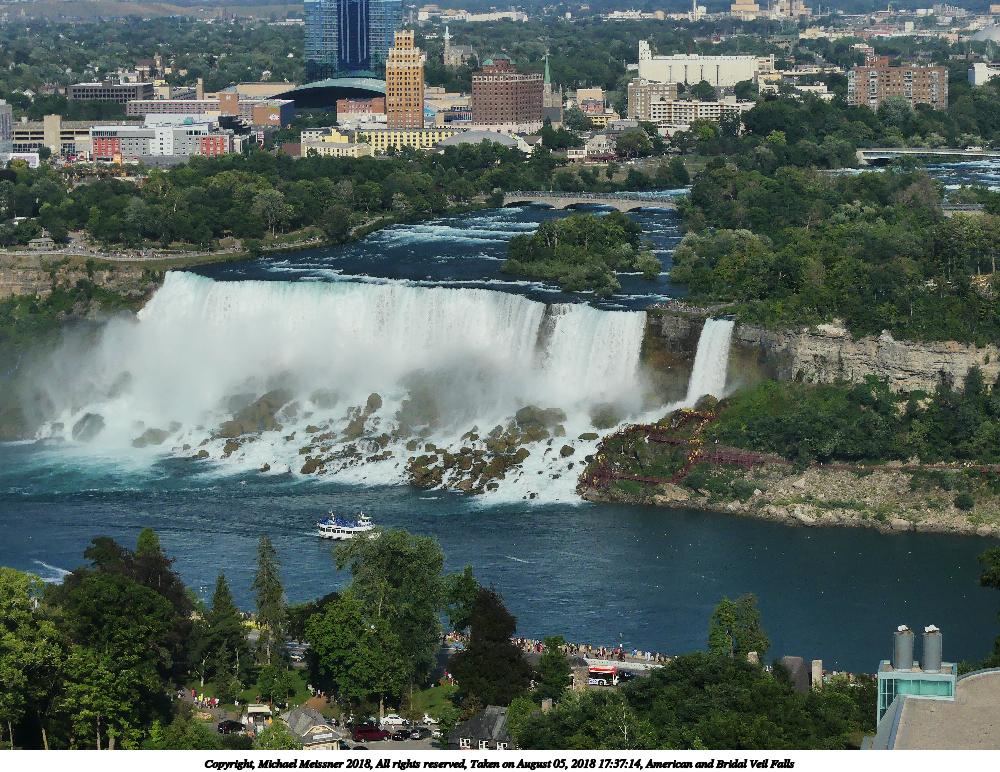 Picture #10: American and Bridal Veil Falls 1000x772, 226,861 bytes (222K), (html file) Copyright, Michael Meissner 2018, All rights reserved Panasonic FZ300 camera f/4.0, ISO 100, 1/1600 sec, 16.9mm, auto mode, auto wb (5500), matrix metering, bias -1.0, image stabilization, normal color mode 35mm equivalent focal length 94.0mm Extra equipment used: Taken through the hotel room window Programs used: raw therapee Taken by Michael Meissner on August 05, 2018 17:37:14 Last modified on August 19, 2018 at 18:27 |