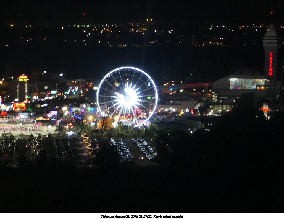 Picture #14: Ferris wheel #2 1000x772, 269,988 bytes (264K), (html file) Copyright, Michael Meissner 2018, All rights reserved Panasonic FZ300 camera f/4.0, ISO 100, 1/400 sec, 49.2mm, auto mode, auto wb (5600), matrix metering, image stabilization, normal color mode 35mm equivalent focal length 274.0mm Extra equipment used: Taken through the hotel room window Programs used: raw therapee Taken by Michael Meissner on August 05, 2018 17:38:07 Last modified on August 19, 2018 at 18:28 |