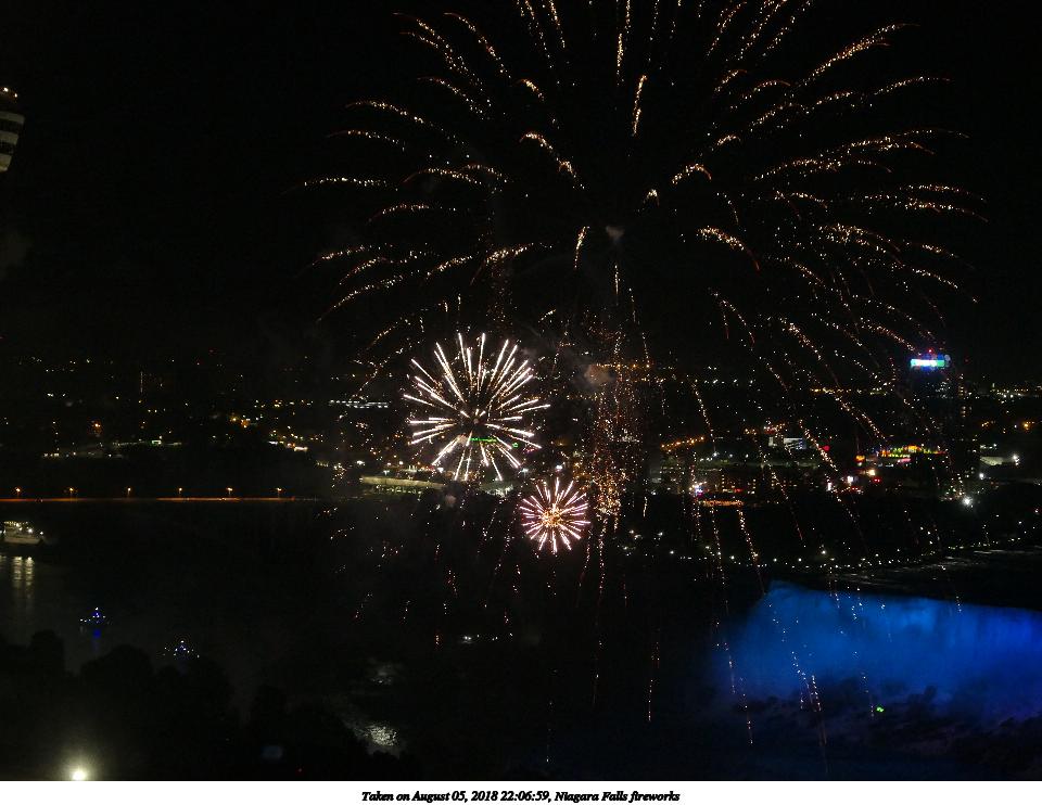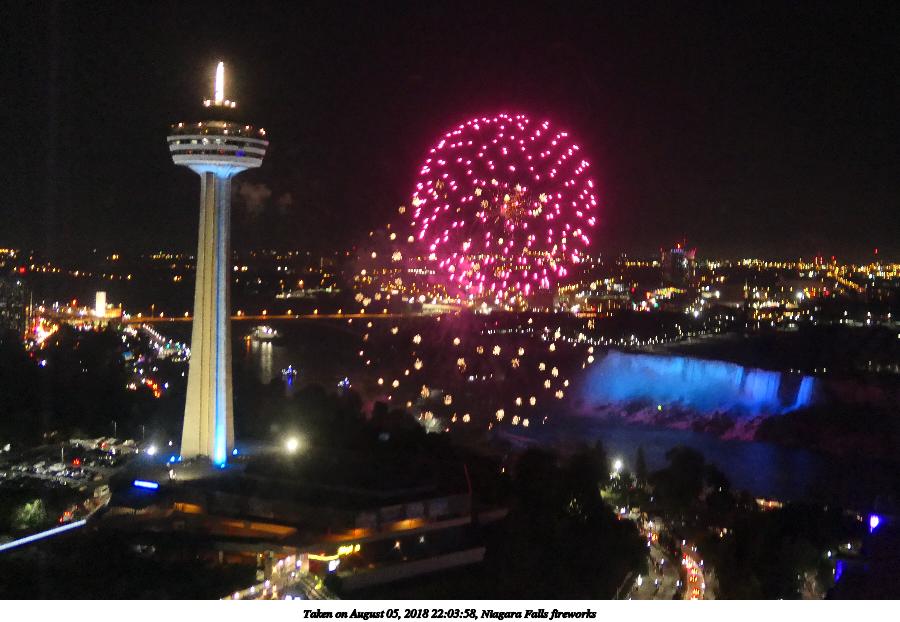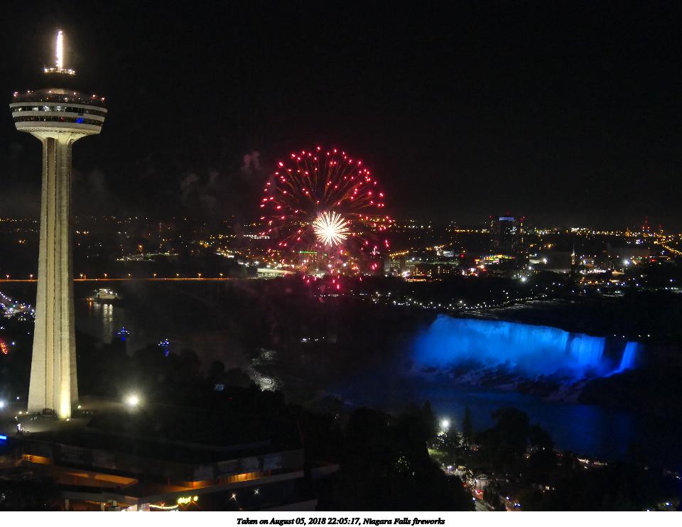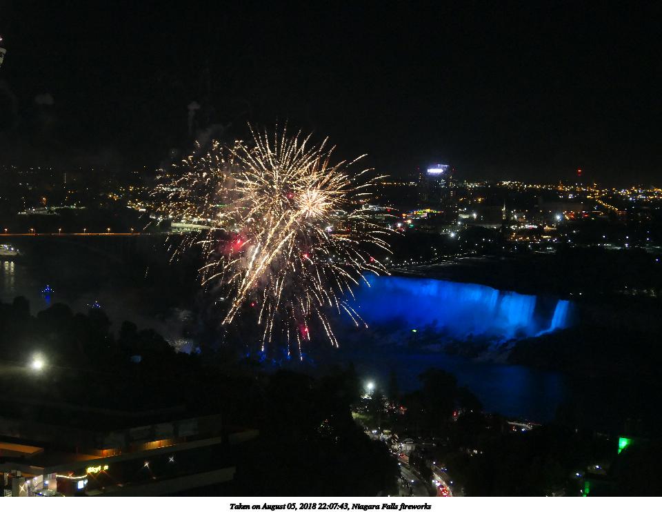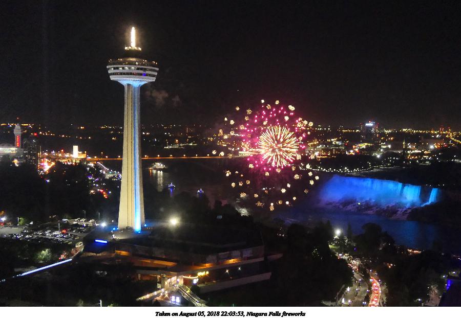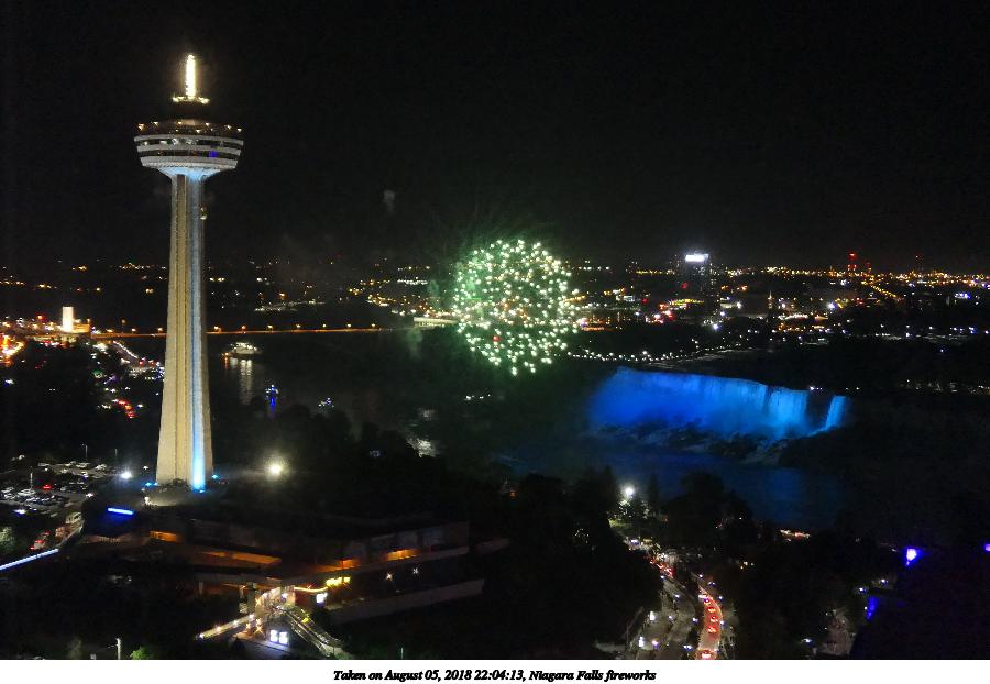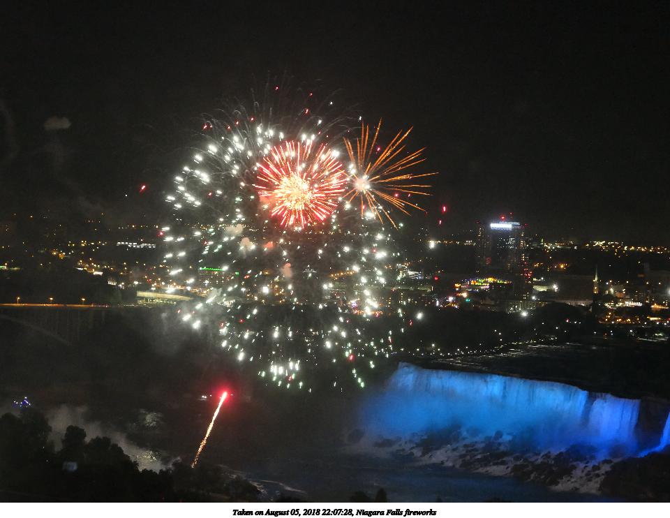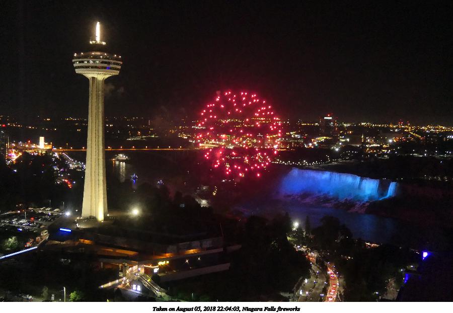 Picture #9: Niagara Falls fireworks #9 960x742, 117,993 bytes (116K), (html file) Panasonic LX-10 camera f/2.8, ISO 1600, 1/8 sec, 24.5mm, auto mode, auto wb (5100), matrix metering, image stabilization 35mm equivalent focal length 73.0mm Extra equipment used: Taken through hotel window Programs used: crop Taken by Michael Meissner on August 05, 2018 22:07:28 Last modified on August 19, 2018 at 16:42 |