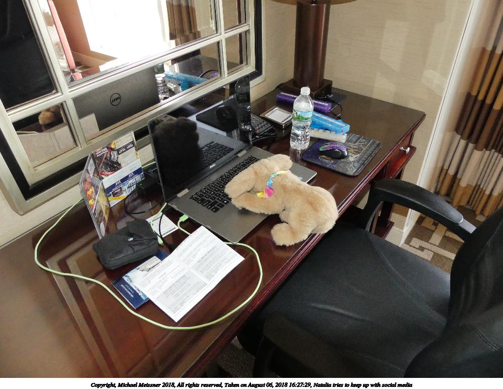 Picture #4: Natalia tries to keep up with social media 1000x772, 158,507 bytes (155K), (html file) Copyright, Michael Meissner 2018, All rights reserved Panasonic FZ300 camera f/2.8, ISO 800, flash, 1/60 sec, 4.5mm, auto mode, auto wb (6200), matrix metering, image stabilization, normal color mode 35mm equivalent focal length 25.0mm Programs used: rotate left Taken by Michael Meissner on August 06, 2018 16:27:29 Last modified on August 19, 2018 at 16:30 |