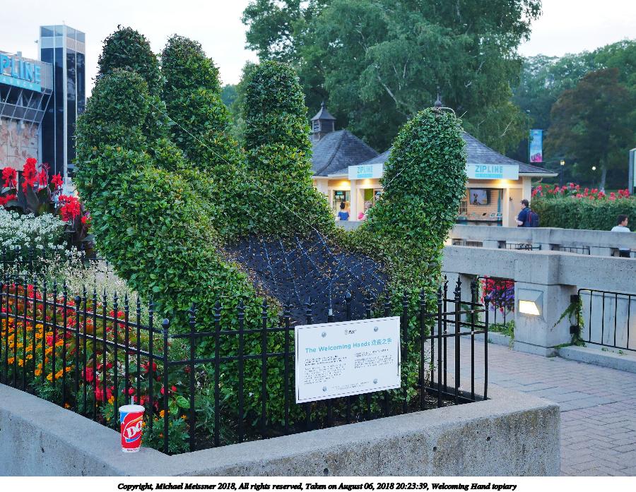 Picture #16: Welcoming Hand topiary 900x697, 222,088 bytes (217K), (html file) Copyright, Michael Meissner 2018, All rights reserved Panasonic G85 camera with Olympus-m43 12-40mm f/2.8 lens f/2.8, ISO 640, 1/60 sec, 22.0mm, auto mode, auto wb (7700), matrix metering, image stabilization, noise reduction 1 35mm equivalent focal length 44.0mm Programs used: crop, raw therapee Taken by Michael Meissner on August 06, 2018 20:23:39 Last modified on August 19, 2018 at 18:42 |