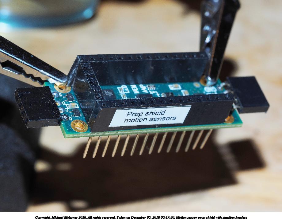 Picture #2: Motion sensor prop shield with stacking headers 920x713, 94,356 bytes (93K), (html file) Copyright, Michael Meissner 2018, All rights reserved Olympus E-M1-I camera with Olympus-m43 60mm f/2.8 lens f/8.0, ISO 320, flash, 1/60 sec, 60.0mm, aperture priority, vivid color, SHQ, matrix metering, IS Auto, noise reduction auto, anti-shock 35mm equivalent focal length 120.0mm Programs used: crop, gimp, raw therapee Taken by Michael Meissner on December 05, 2018 00:19:30 Last modified on December 05, 2018 at 01:04 |