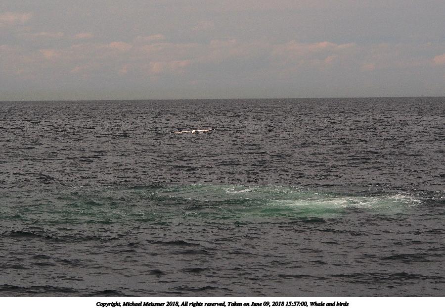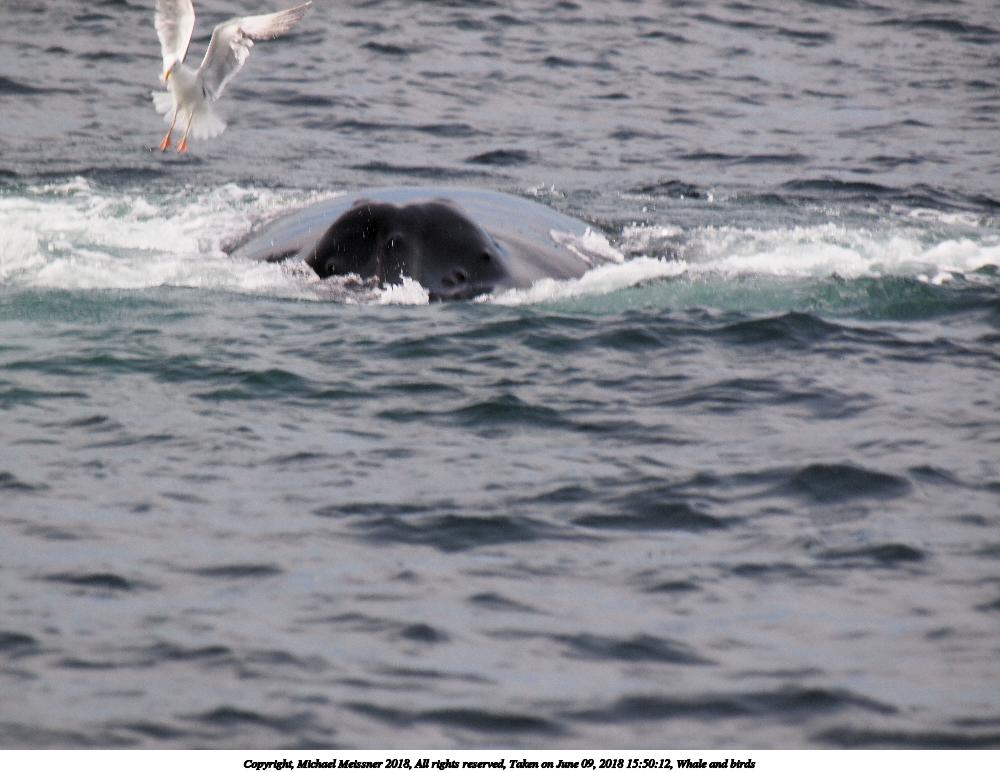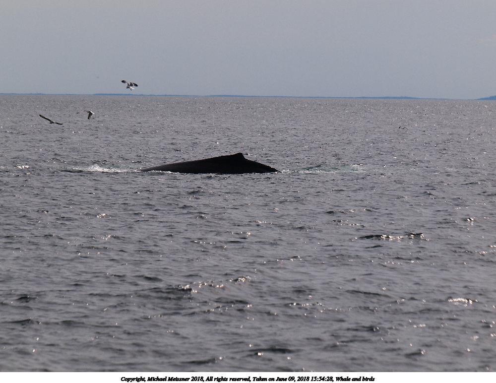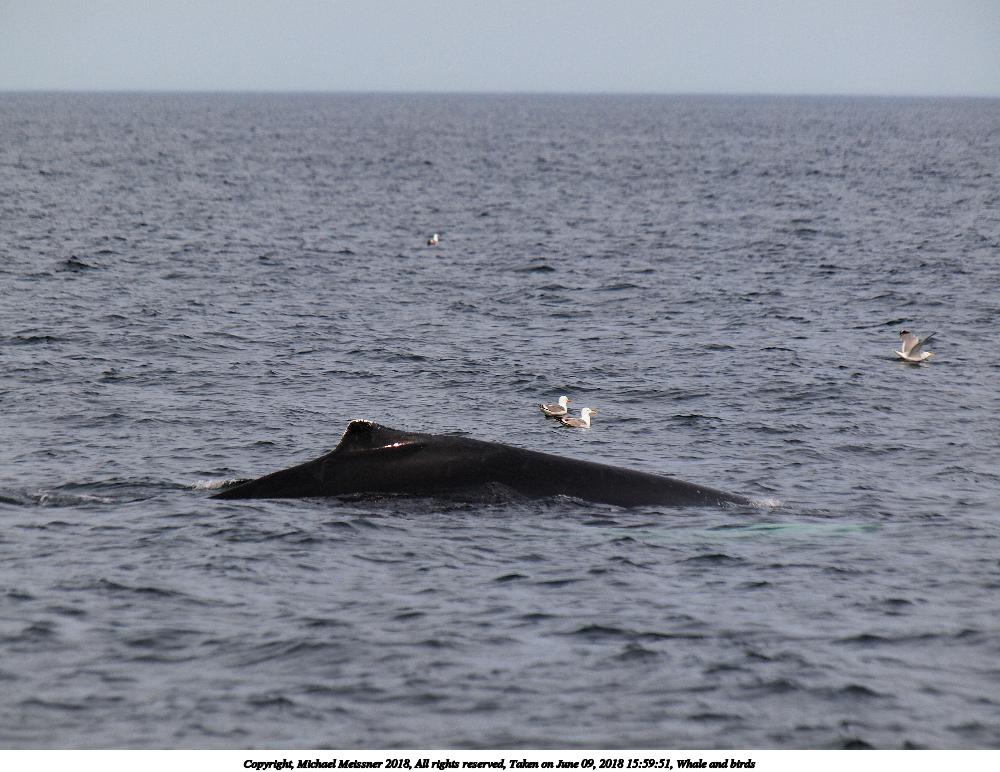 Picture #20: Whale and birds #4 1000x772, 110,747 bytes (109K), (html file) Copyright, Michael Meissner 2018, All rights reserved Olympus E-5 camera with Olympus 50-200mm lens and Olympus EC-14 (1.4x) f/5.6, ISO 200, 1/320 sec, 283.0mm, auto mode, vivid color, HQ, matrix metering, IS1 (All Direction Shake IS), noise filter low 35mm equivalent focal length 567.0mm, EC-14 Taken by Michael Meissner on June 09, 2018 15:50:13 Last modified on July 12, 2018 at 00:18 |