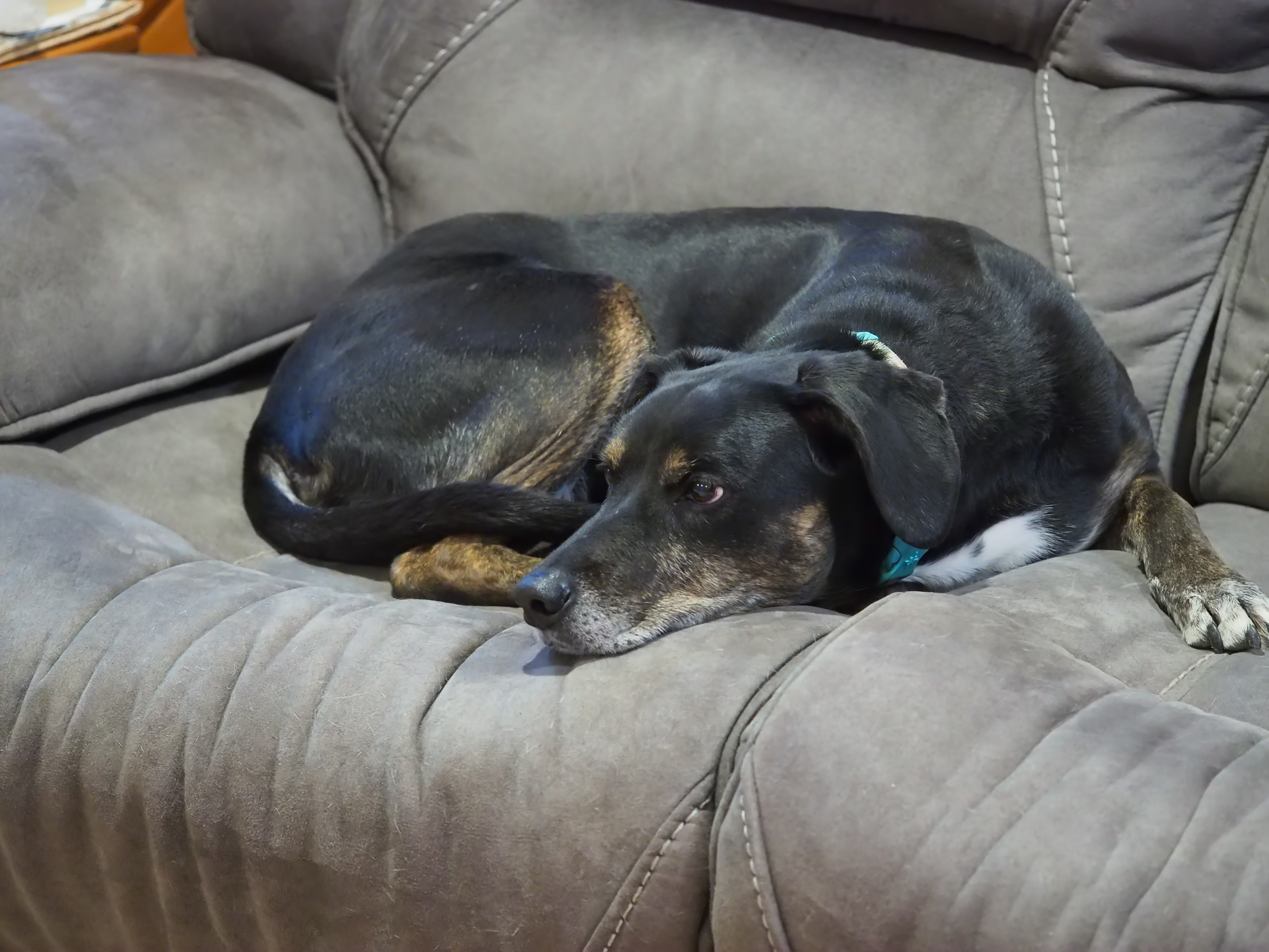 Picture #1: Sophie the sofa pup Small: 900x698, 129,921 bytes (127K), (html file) Large: 3600x2700, 2,751,785 bytes (2.6M), (html file) Copyright, Michael Meissner 2019, All rights reserved Olympus Stylus-1 camera f/2.8, ISO 800, flash (+0.33 flash compensation), 1/50 sec, 10.8mm, auto mode, vivid color, SHQ, matrix metering, IS Auto, noise reduction auto, noise filter low 35mm equivalent focal length 50.0mm Programs used: crop, raw therapee Taken by Michael Meissner on January 22, 2019 01:38:49 Last modified on January 23, 2019 at 09:56 This picture is one of my favorites. |