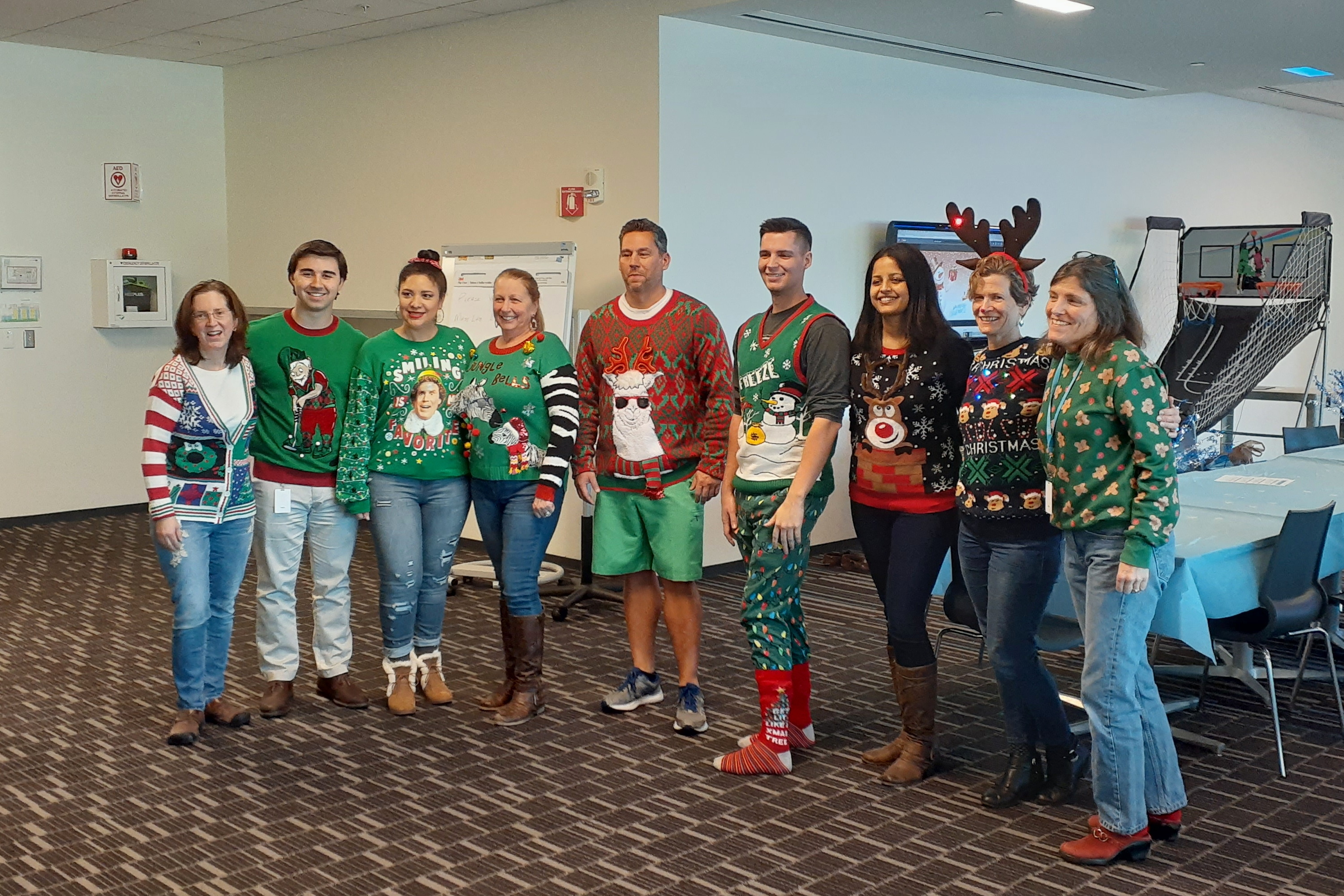 Picture #3: Ugly christmas sweater contest at work Thumb: 500x333, 47,019 bytes (46K) Small: 1000x690, 155,706 bytes (153K), (html file) Large: 3000x2000, 1,596,605 bytes (1.5M), (html file) Copyright, Michael Meissner 2019, All rights reserved Samsung A20 phone f/1.9, ISO 250, 1/60 sec, 3.6mm, auto mode, spot metering 35mm equivalent focal length 27.0mm Programs used: crop, raw therapee Taken by Michael Meissner on December 12, 2019 14:36:58 Last modified on December 13, 2019 at 10:03 |