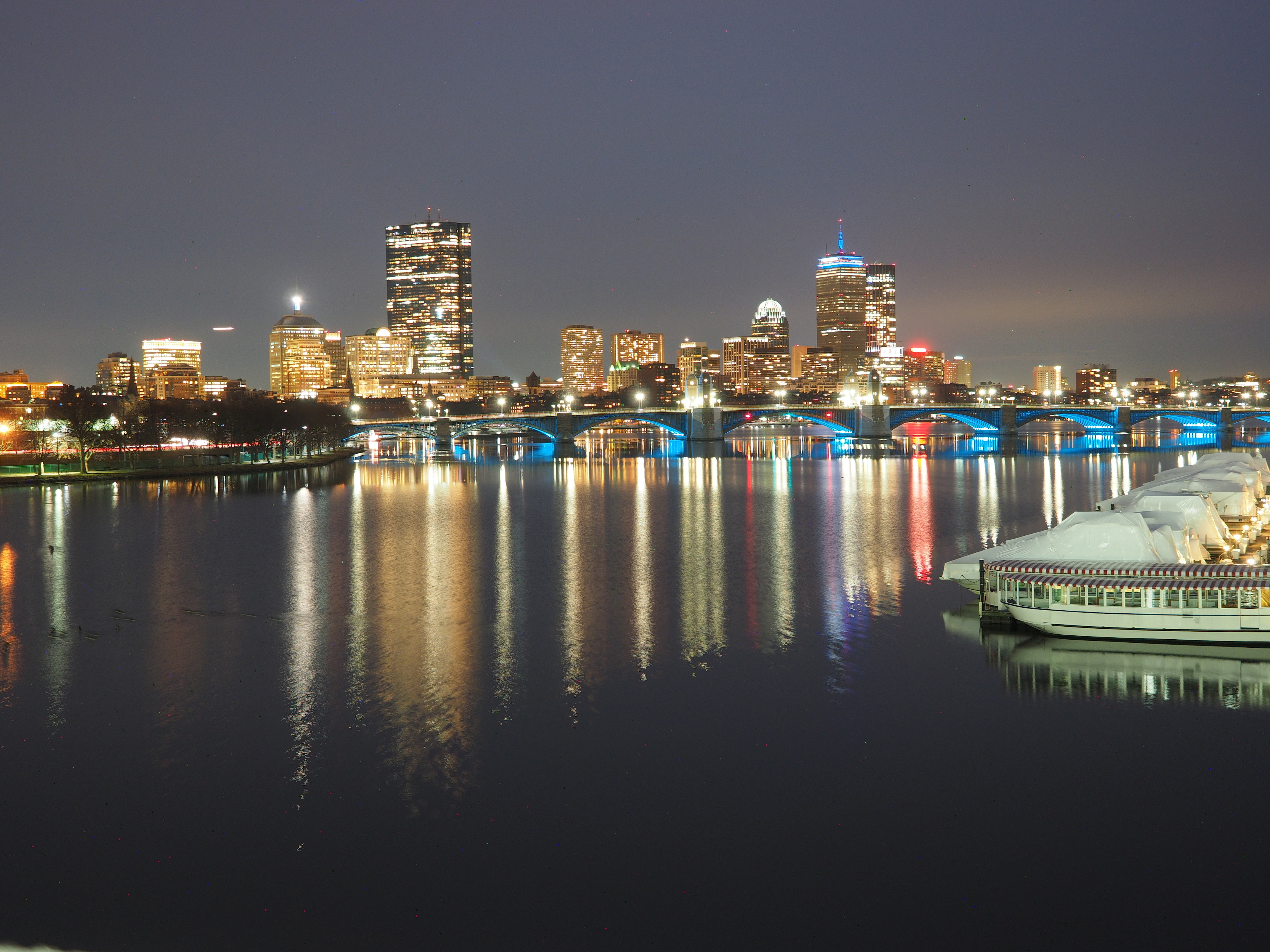 Picture #2: Boston at night #2 Thumb: 460x345, 39,309 bytes (39K) Small: 920x713, 108,066 bytes (106K), (html file) Large: 4600x3450, 3,585,798 bytes (3.4M), (html file) Copyright, Michael Meissner 2019, All rights reserved Olympus E-M1-I camera with Olympus-m43 12-40mm f/2.8 lens f/2.8, ISO 200, 4 sec, 23.0mm, auto mode, vivid color, SHQ, center weight metering, IS Auto, noise filter low, anti-shock 35mm equivalent focal length 46.0mm Programs used: crop, raw therapee Taken by Michael Meissner on December 29, 2019 17:02:29 Last modified on January 22, 2020 at 00:19 This picture is one of my favorites. |