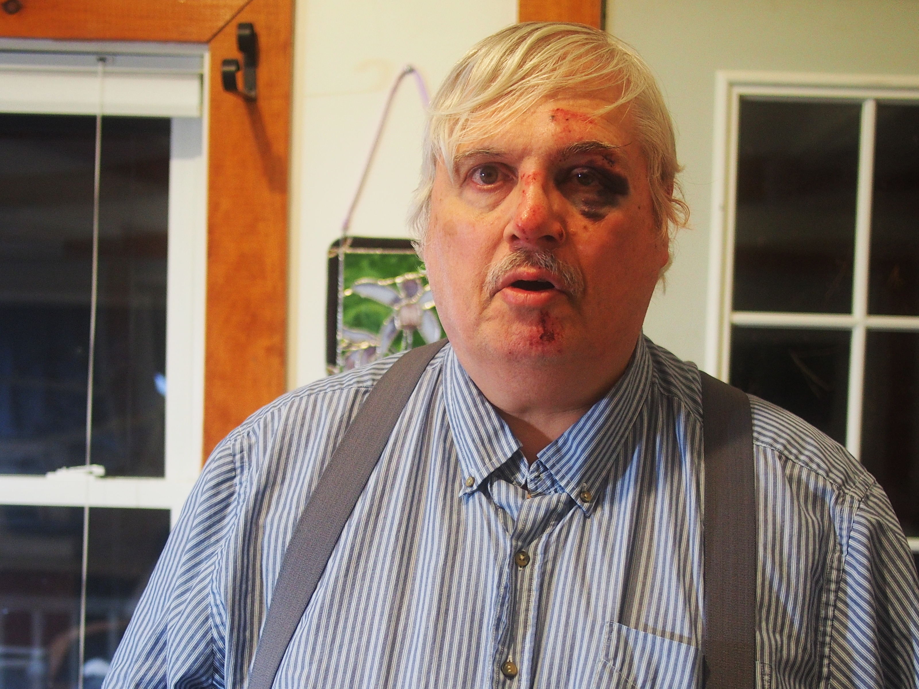The picture of me is several hours later after I did some cleanup. The emergency room nurse said that the bruise will eventually go lower in the face before going away.