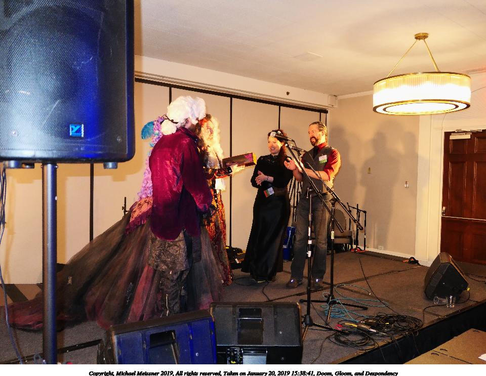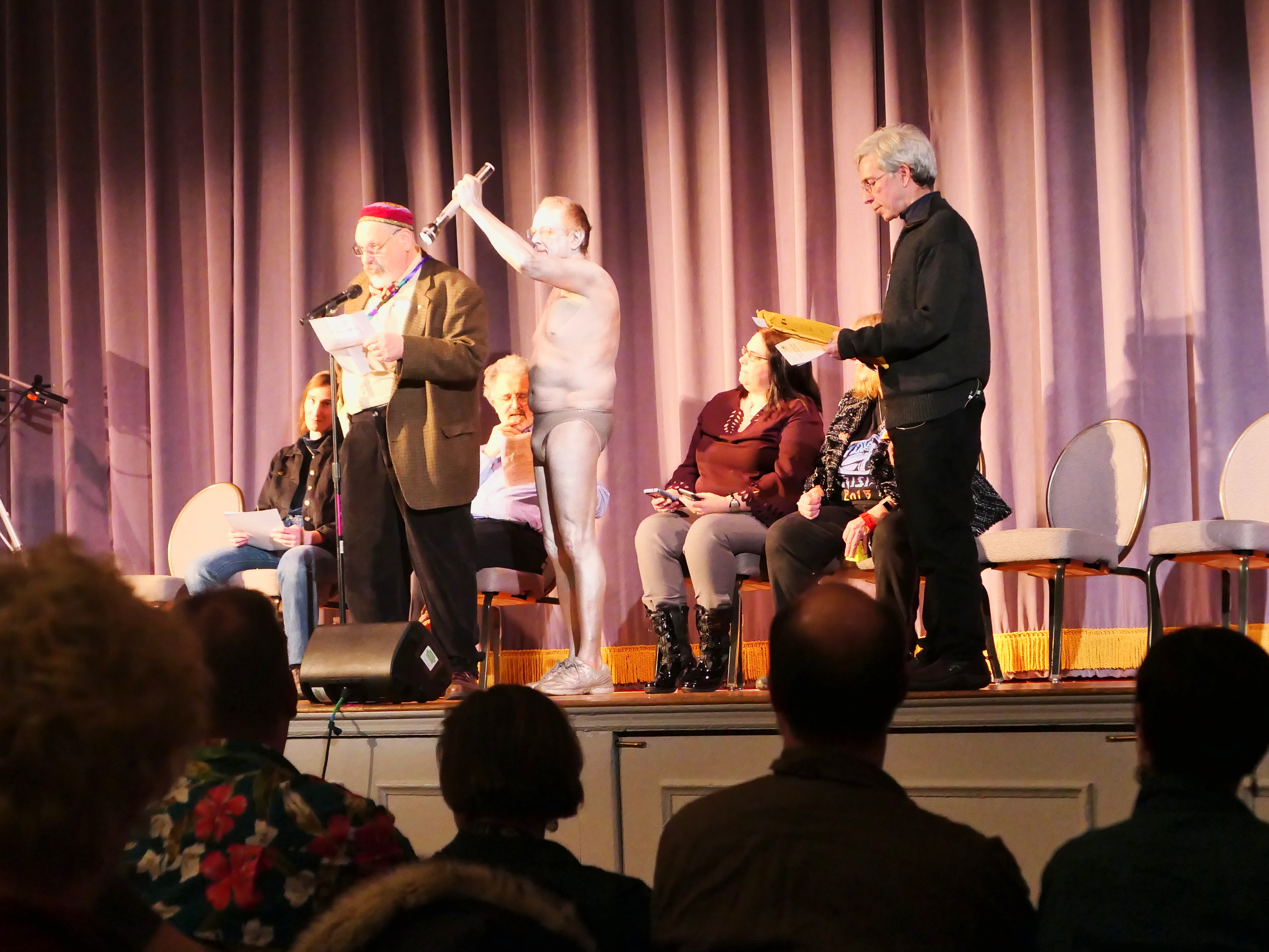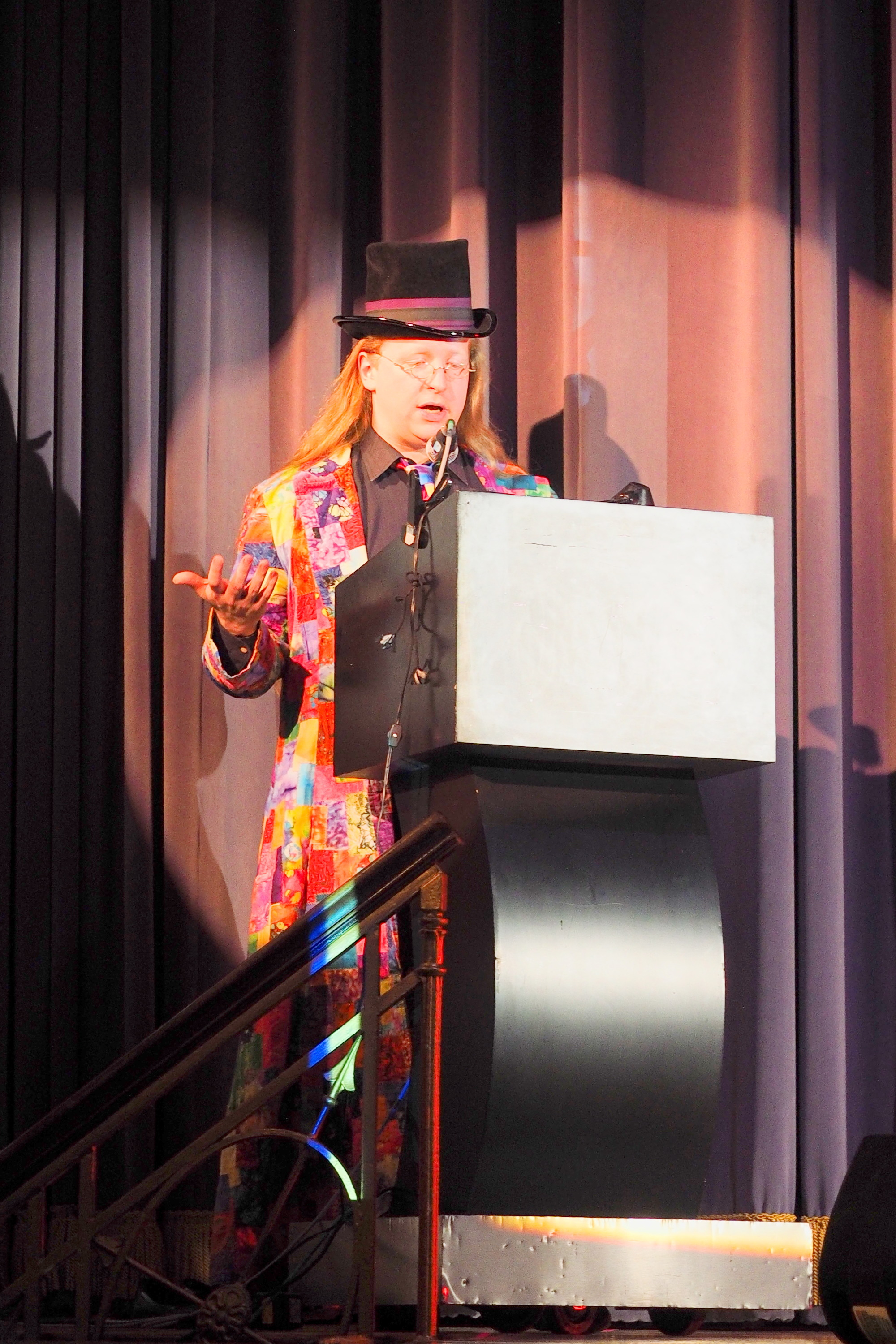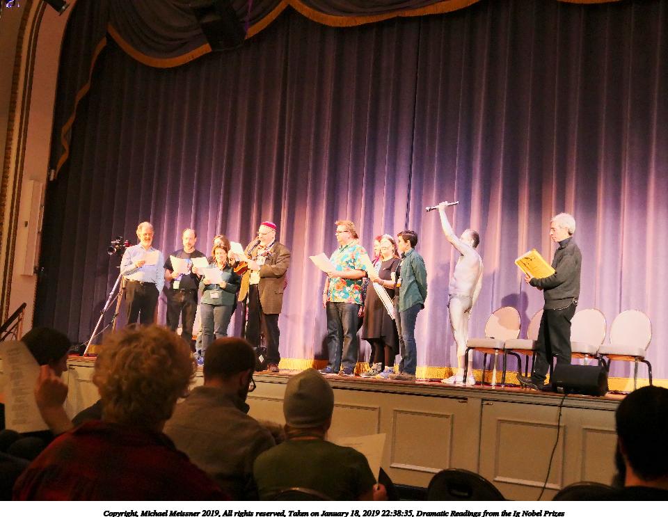 Picture #1: Dramatic Readings from the Ig Nobel Prizes Thumb: 480x360, 67,109 bytes (66K) Small: 960x743, 136,924 bytes (134K), (html file) Large: 4800x3600, 3,189,448 bytes (3.0M), (html file) Copyright, Michael Meissner 2019, All rights reserved Panasonic LX-10 camera f/2.8, ISO 1600, 1/50 sec, 26.4mm, auto mode, auto wb (3400), matrix metering, bias -0.3, image stabilization 35mm equivalent focal length 93.0mm, i.zoom Programs used: adjusttime, crop, raw therapee Taken by Michael Meissner on January 18, 2019 22:08:44 Last modified on April 10, 2019 at 23:09 |