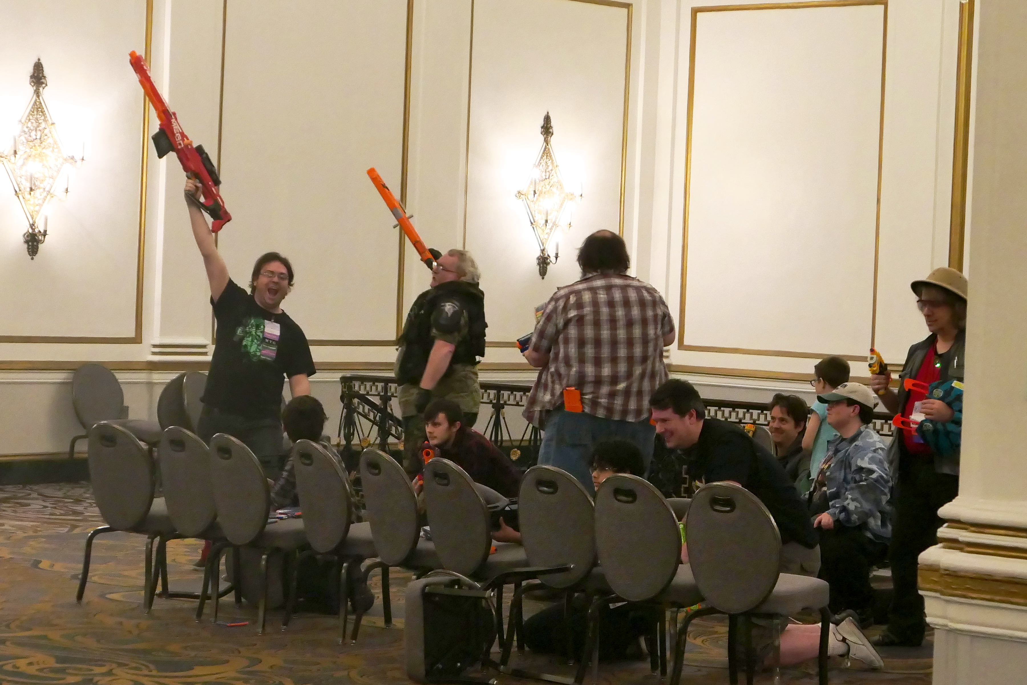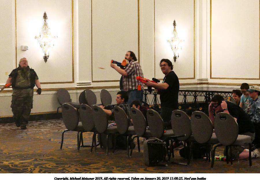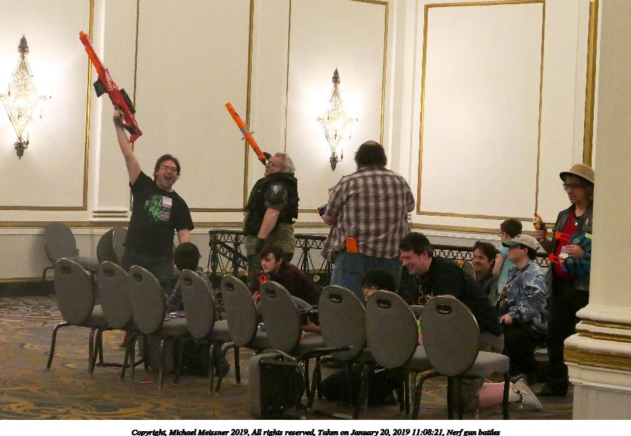 Picture #22: Nerf gun battles Thumb: 450x300, 59,391 bytes (58K) Small: 900x623, 110,906 bytes (109K), (html file) Large: 3600x2400, 5,685,666 bytes (5.4M), (html file) Copyright, Michael Meissner 2019, All rights reserved Panasonic LX-10 camera f/2.8, ISO 3200, 1/400 sec, 25.1mm, shutter priority, auto wb (3200), matrix metering, bias -0.3, image stabilization 35mm equivalent focal length 74.0mm Programs used: adjusttime, crop, gimp, raw therapee Taken by Michael Meissner on January 20, 2019 11:05:30 Last modified on April 10, 2019 at 23:23 |