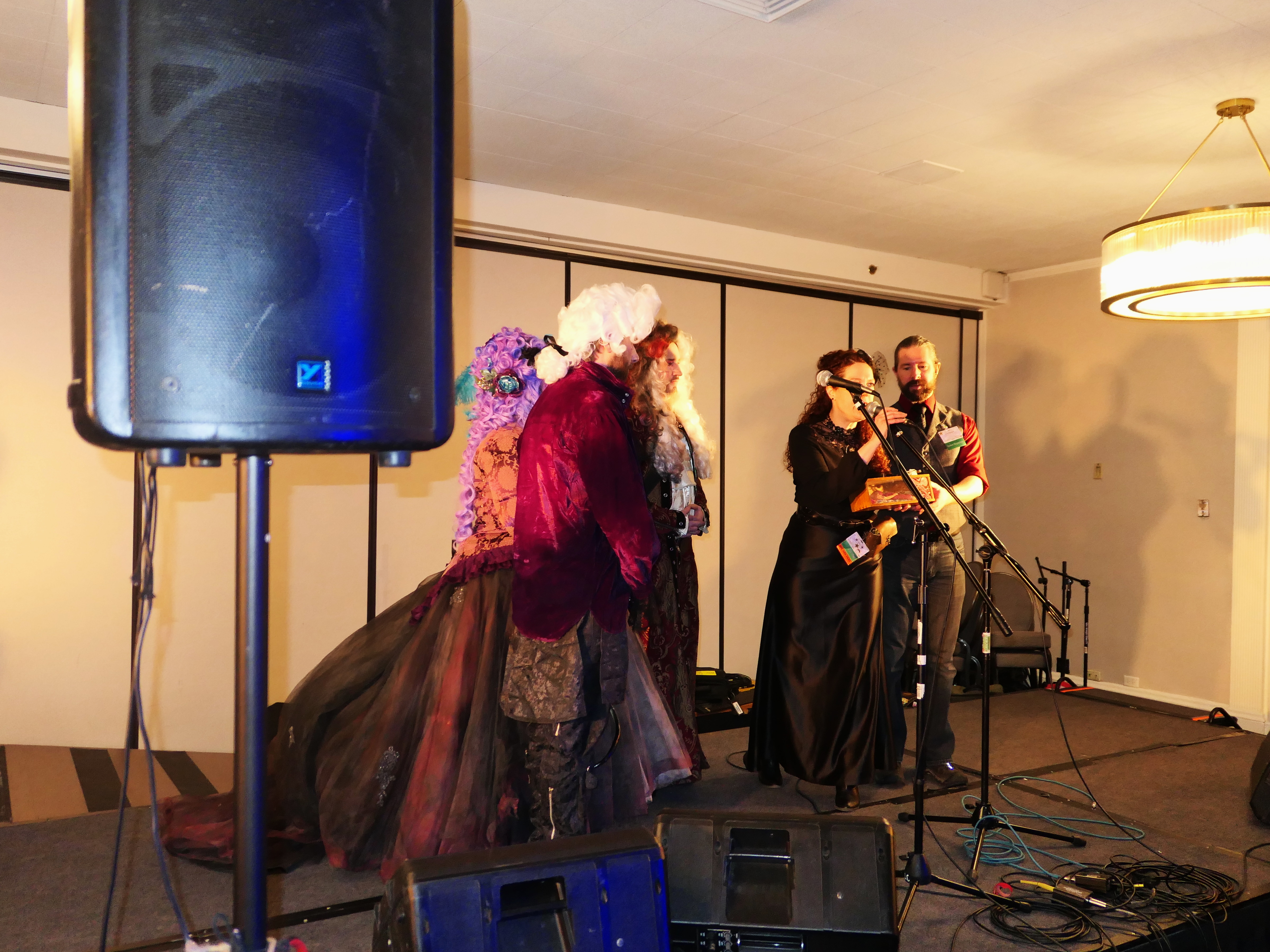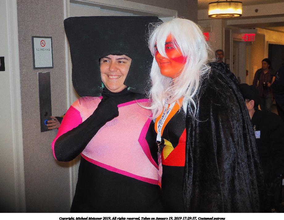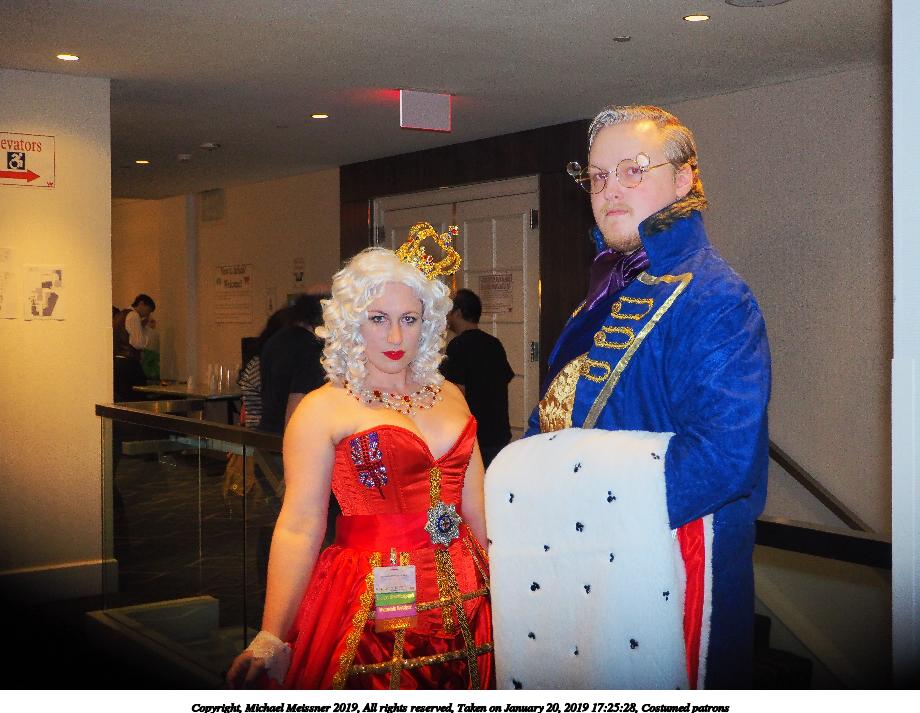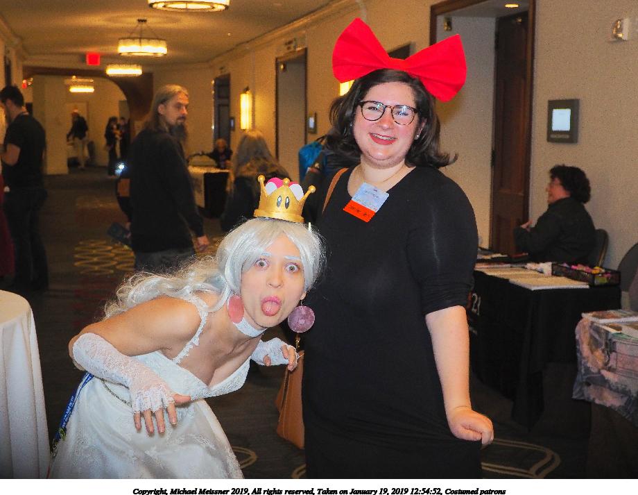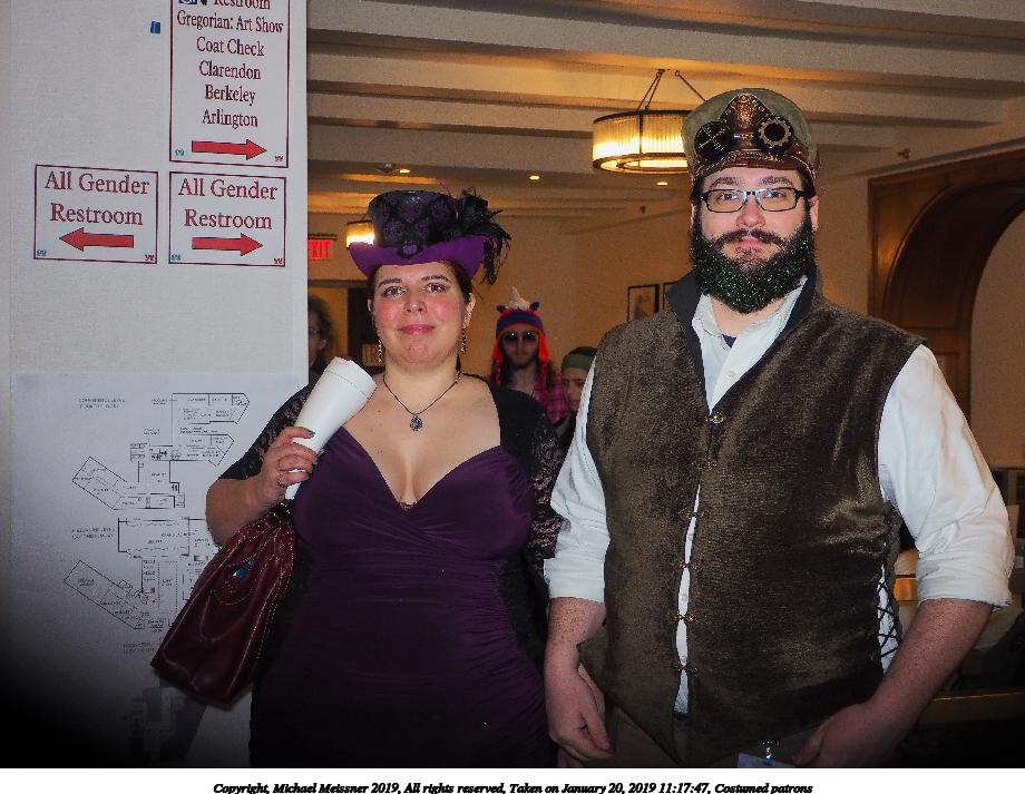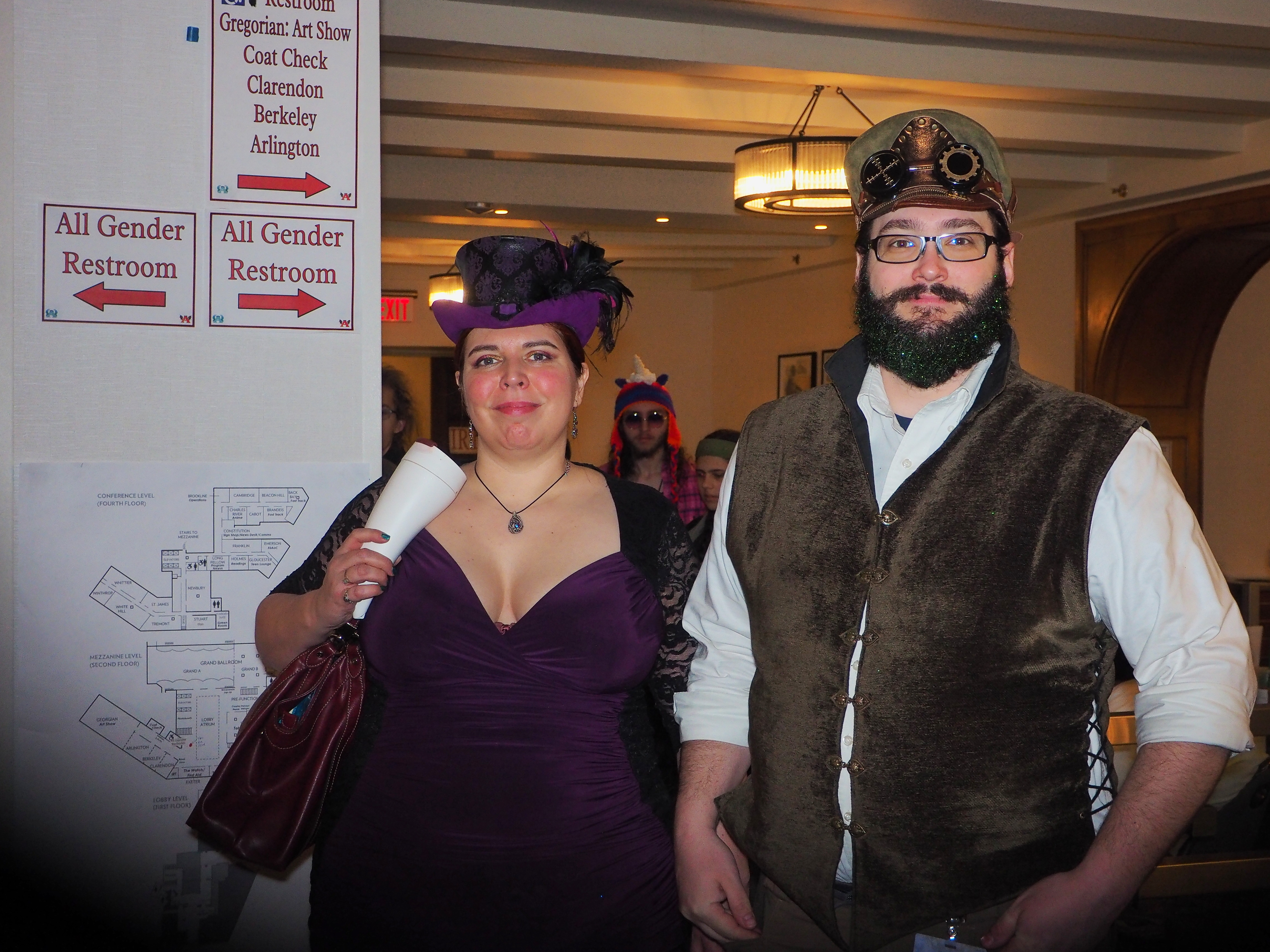 Picture #6: Costumed patrons Thumb: 460x345, 51,428 bytes (51K) Small: 920x713, 152,886 bytes (150K), (html file) Large: 4600x3450, 4,703,429 bytes (4.5M), (html file) Copyright, Michael Meissner 2019, All rights reserved Olympus E-M10-II camera with Olympus-m43 12-50mm f/3.5-6.3 lens f/5.2, ISO 800, flash (-0.33 flash compensation), 1/60 sec, 26.0mm, auto mode, vivid color, auto gradation, SHQ, matrix metering, IS Auto, noise reduction auto 35mm equivalent focal length 52.0mm Taken by Michael Meissner on January 19, 2019 12:28:28 Last modified on April 10, 2019 at 23:12 |