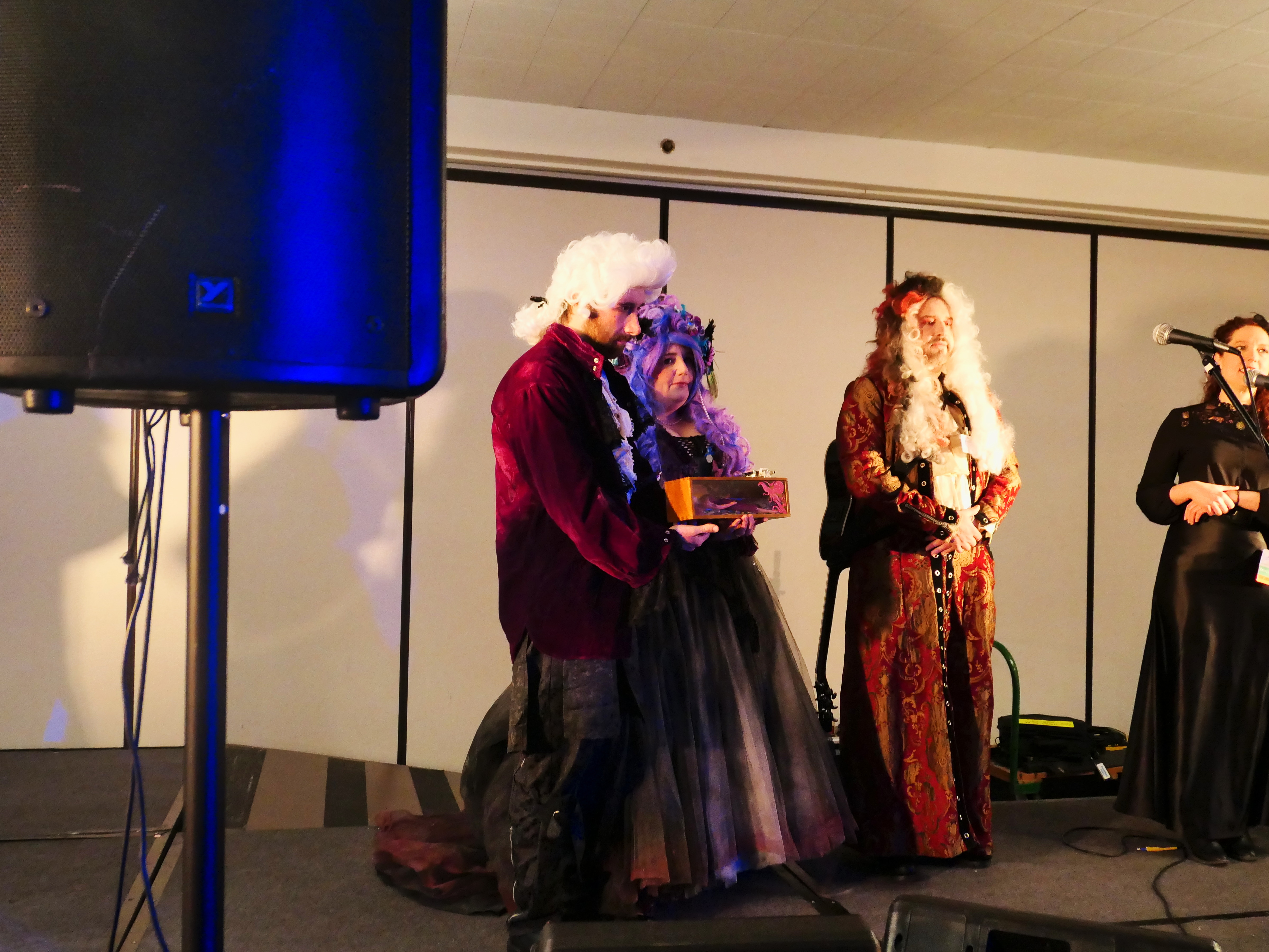 Picture #14: Costumed patrons #3 Thumb: 460x345, 42,569 bytes (42K) Small: 920x713, 116,625 bytes (114K), (html file) Large: 4600x3450, 3,709,581 bytes (3.5M), (html file) Copyright, Michael Meissner 2019, All rights reserved Olympus E-M10-II camera with Olympus-m43 12-50mm f/3.5-6.3 lens f/5.2, ISO 800, flash (-0.33 flash compensation), 1/60 sec, 26.0mm, auto mode, vivid color, auto gradation, SHQ, matrix metering, IS Auto, noise reduction auto 35mm equivalent focal length 52.0mm Programs used: crop, raw therapee Taken by Michael Meissner on January 19, 2019 17:29:37 Last modified on April 10, 2019 at 23:16 |