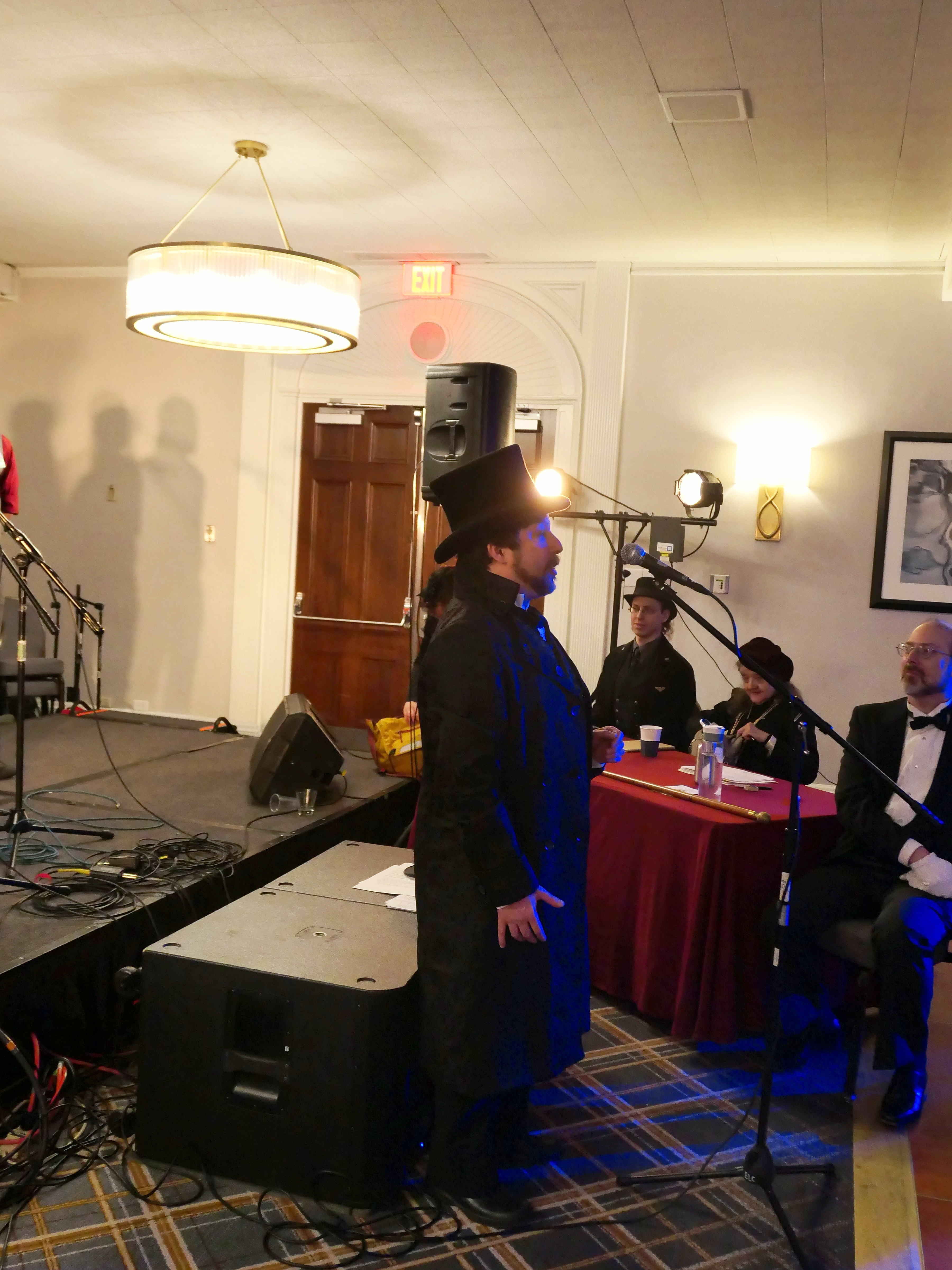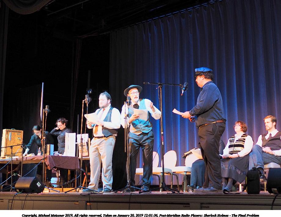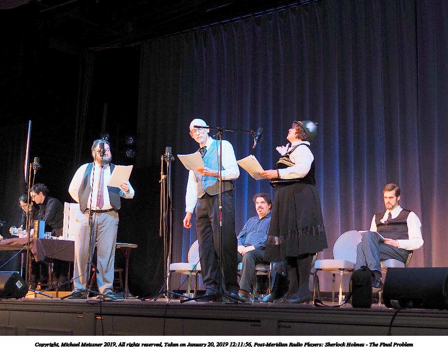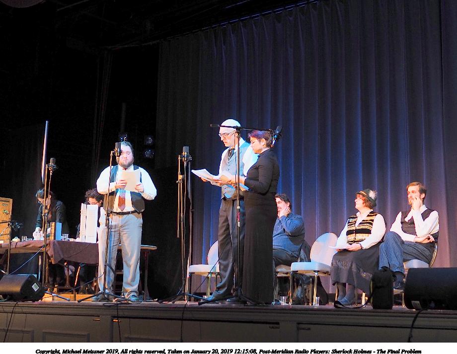 Picture #32: Post-Meridian Radio Players: Sherlock Holmes - The Final Problem #3 Thumb: 460x345, 47,086 bytes (46K) Small: 920x713, 114,637 bytes (112K), (html file) Large: 4600x3450, 2,691,163 bytes (2.6M), (html file) Copyright, Michael Meissner 2019, All rights reserved Olympus E-M1-I camera with Panasonic-Leica 15mm lens f/1.7, ISO 200, 1/60 sec, 15.0mm, auto mode, vivid color, SHQ, spot metering, bias -0.3, digital zoom x2, IS Auto, noise reduction auto, noise filter low 35mm equivalent focal length 60.0mm, digital zoom x2 Programs used: crop, raw therapee Taken by Michael Meissner on January 20, 2019 11:53:53 Last modified on April 11, 2019 at 00:34 |