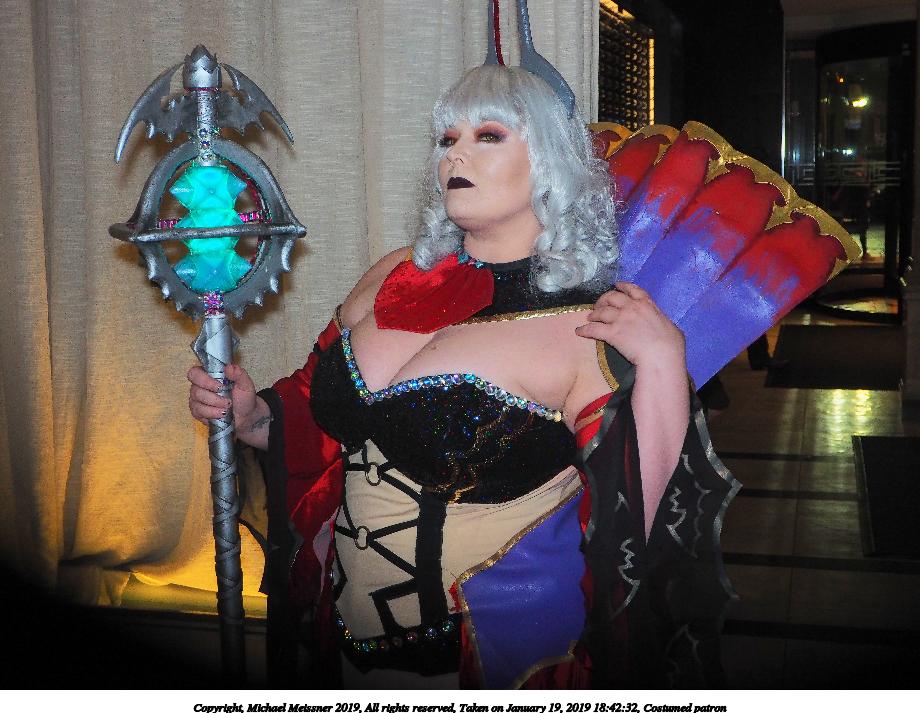 Picture #9: Costumed patron #2 Thumb: 460x345, 48,496 bytes (48K) Small: 920x713, 133,323 bytes (131K), (html file) Large: 4600x3450, 4,376,079 bytes (4.2M), (html file) Copyright, Michael Meissner 2019, All rights reserved Olympus E-M10-II camera with Olympus-m43 12-50mm f/3.5-6.3 lens f/5.2, ISO 1600, flash (-0.33 flash compensation), 1/60 sec, 26.0mm, auto mode, vivid color, auto gradation, SHQ, matrix metering, IS Auto, noise reduction auto 35mm equivalent focal length 52.0mm Programs used: crop, raw therapee Taken by Michael Meissner on January 19, 2019 12:36:58 Last modified on April 10, 2019 at 23:13 |