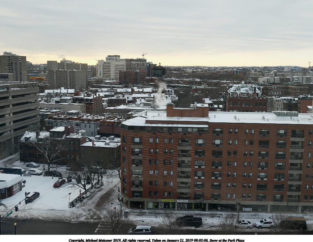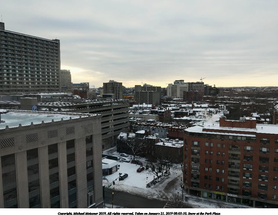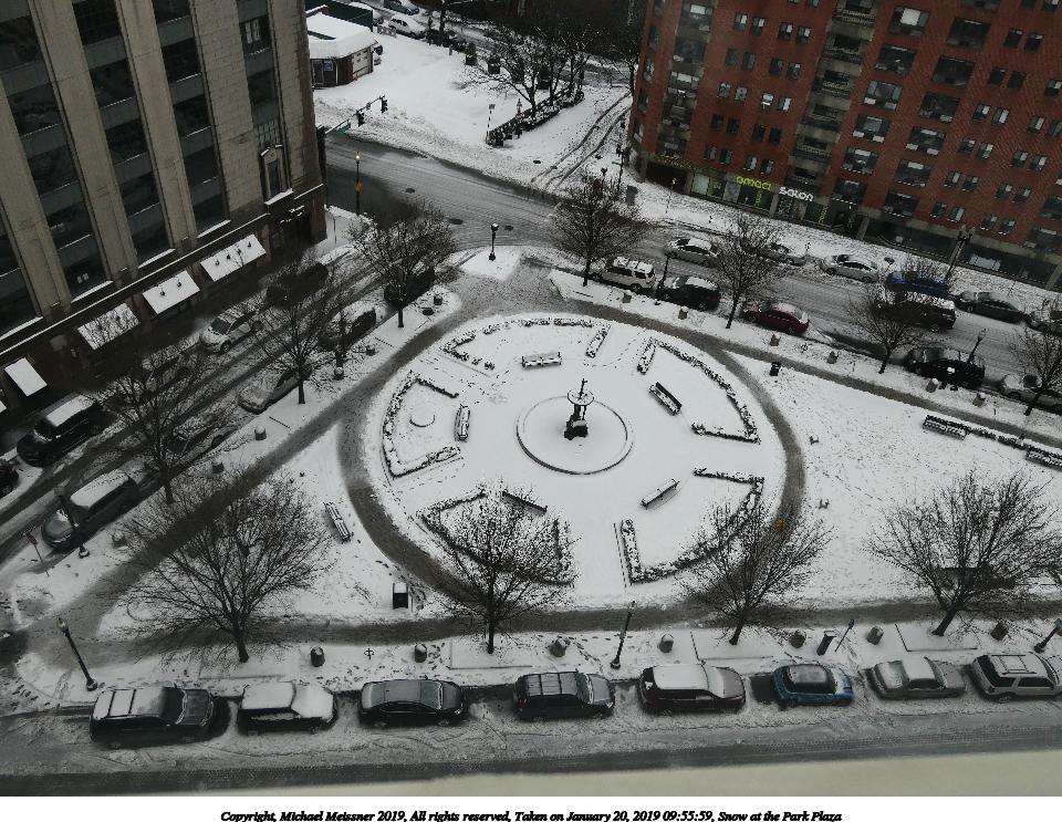 Picture #19: Snow at the Park Plaza Thumb: 480x360, 76,263 bytes (75K) Small: 960x743, 213,660 bytes (209K), (html file) Large: 4800x3600, 4,828,673 bytes (4.6M), (html file) Copyright, Michael Meissner 2019, All rights reserved Panasonic LX-10 camera f/2.8, ISO 125, 1/1000 sec, 9.0mm, auto mode, auto wb (6200), matrix metering, bias -0.3, image stabilization 35mm equivalent focal length 27.0mm Programs used: adjusttime, crop, raw therapee Taken by Michael Meissner on January 20, 2019 09:55:59 Last modified on April 10, 2019 at 23:20 |